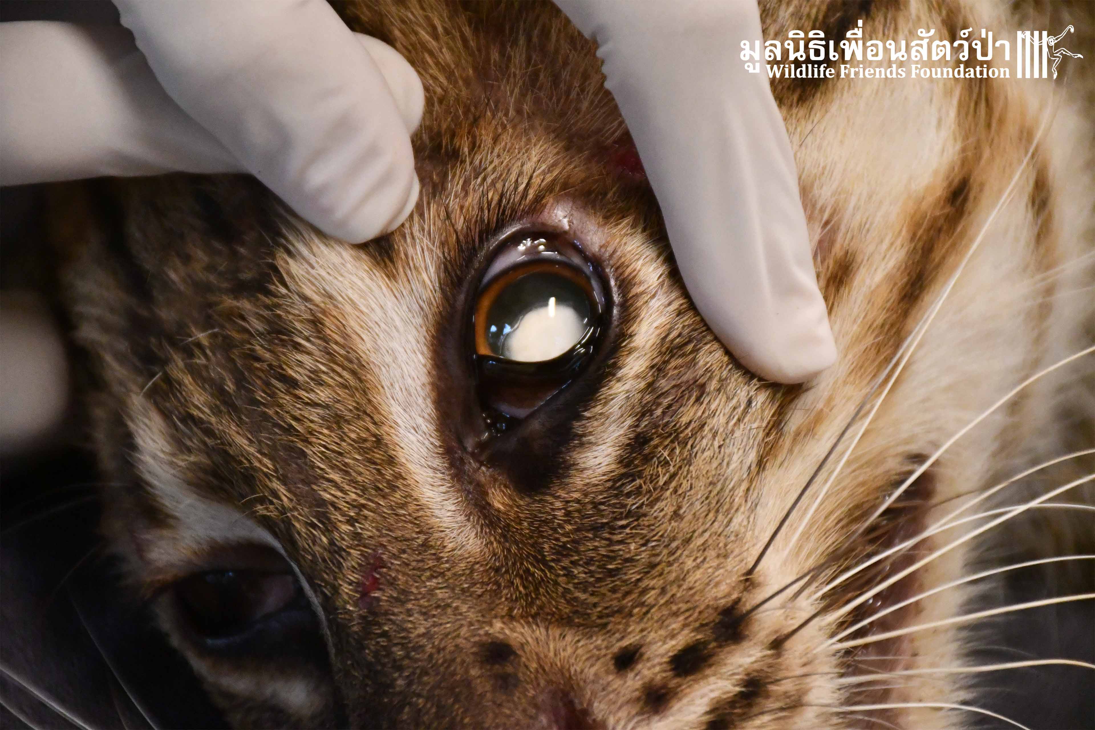 ทางทีมสัตวเเพทย์พบว่าตาของ‘ ว่าไง ‘ดูขุ่นกว่าปกติจึงได้ตรวจอย่างจริงจังจึงพบว่า ‘ ว่าไง ‘ เป็นโรคต้อกระจกที่ตาทั้ง 2 ข้าง ทำให้สูญเสียการมองเห็นบางส่วนออกไป
