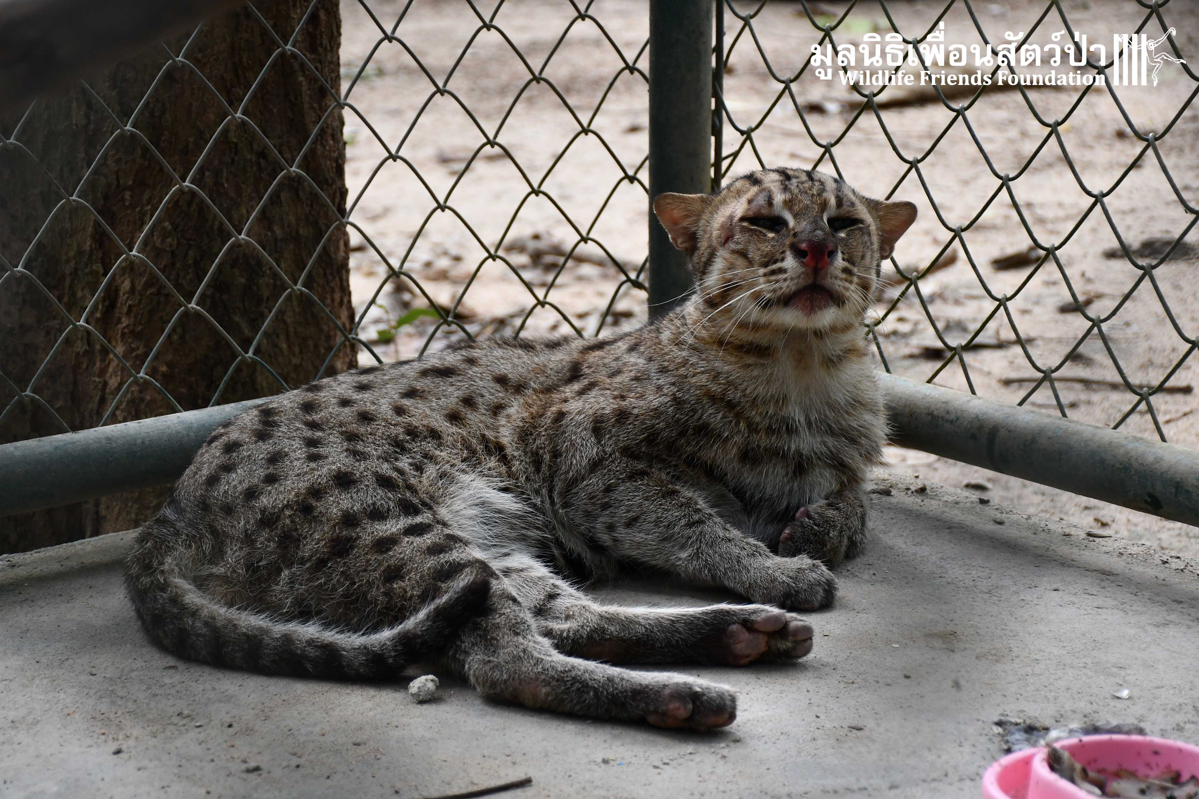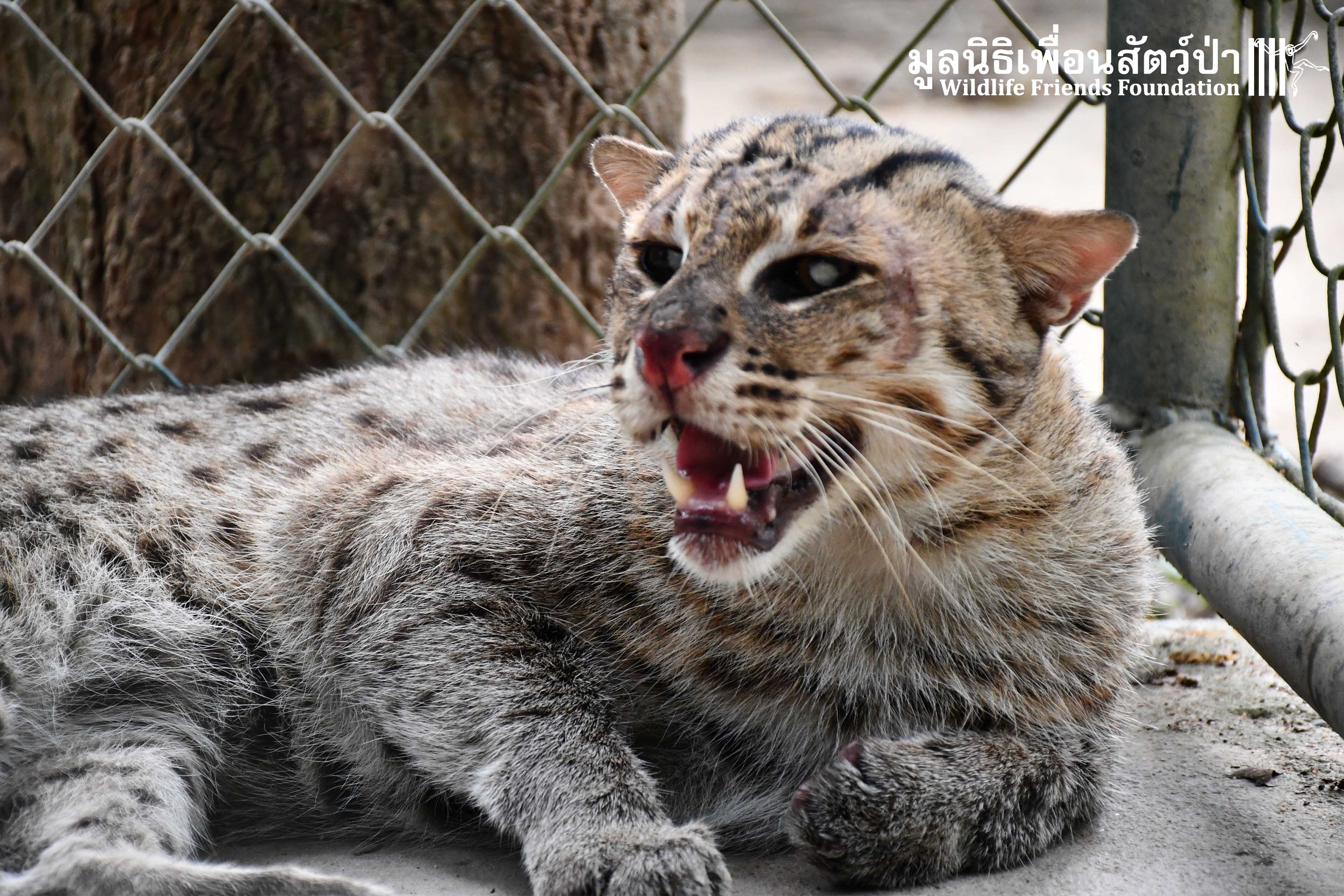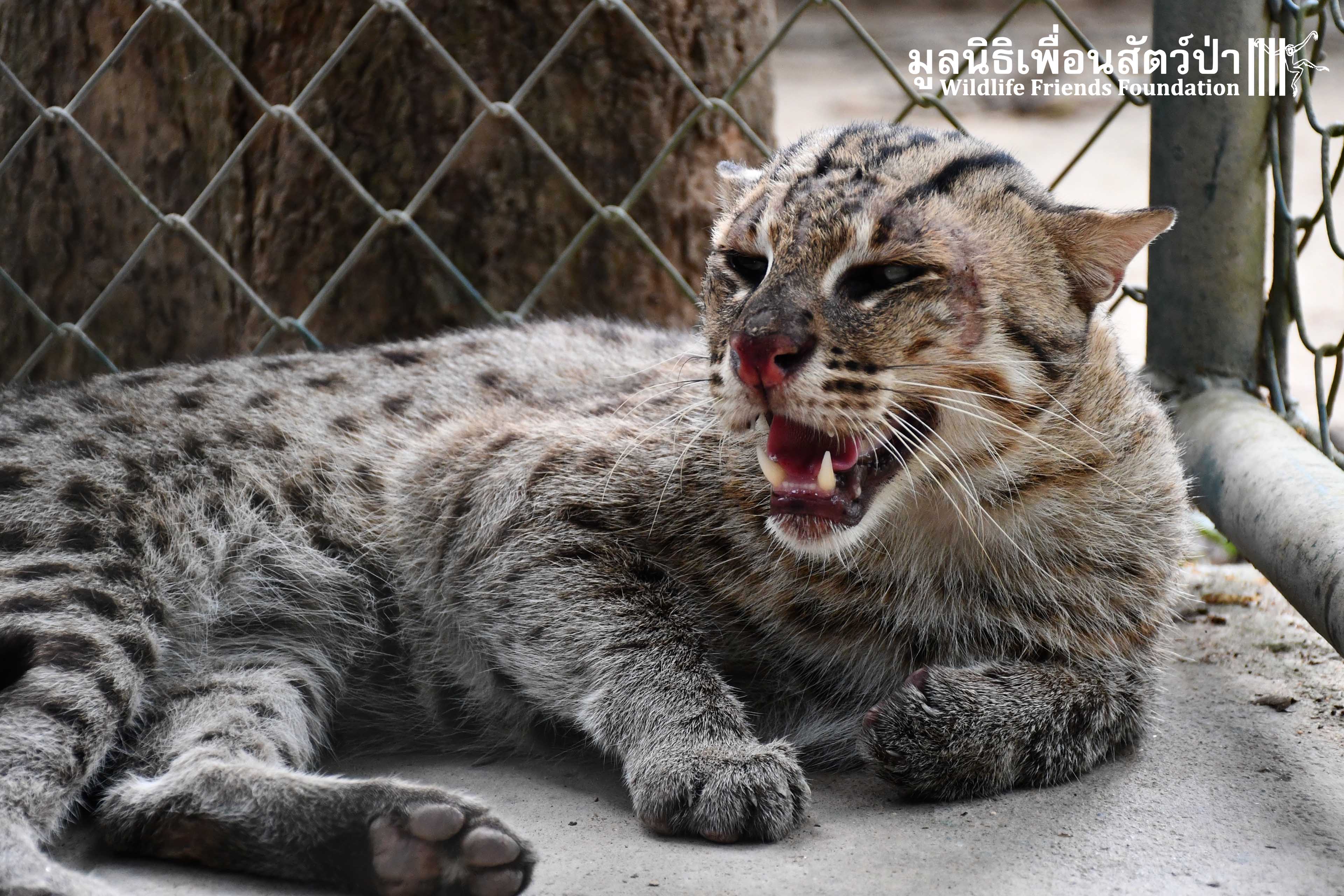 Meet ‘Wa Ngai’ (What’s up) a male Fishing Cat (Prionailurus viverrinus) who spent the first 6 years of his life in a tiny backyard cage of a farmer. He was captured along with 2 siblings when he was found in a shrimp farm in Samut Sakhon Province.