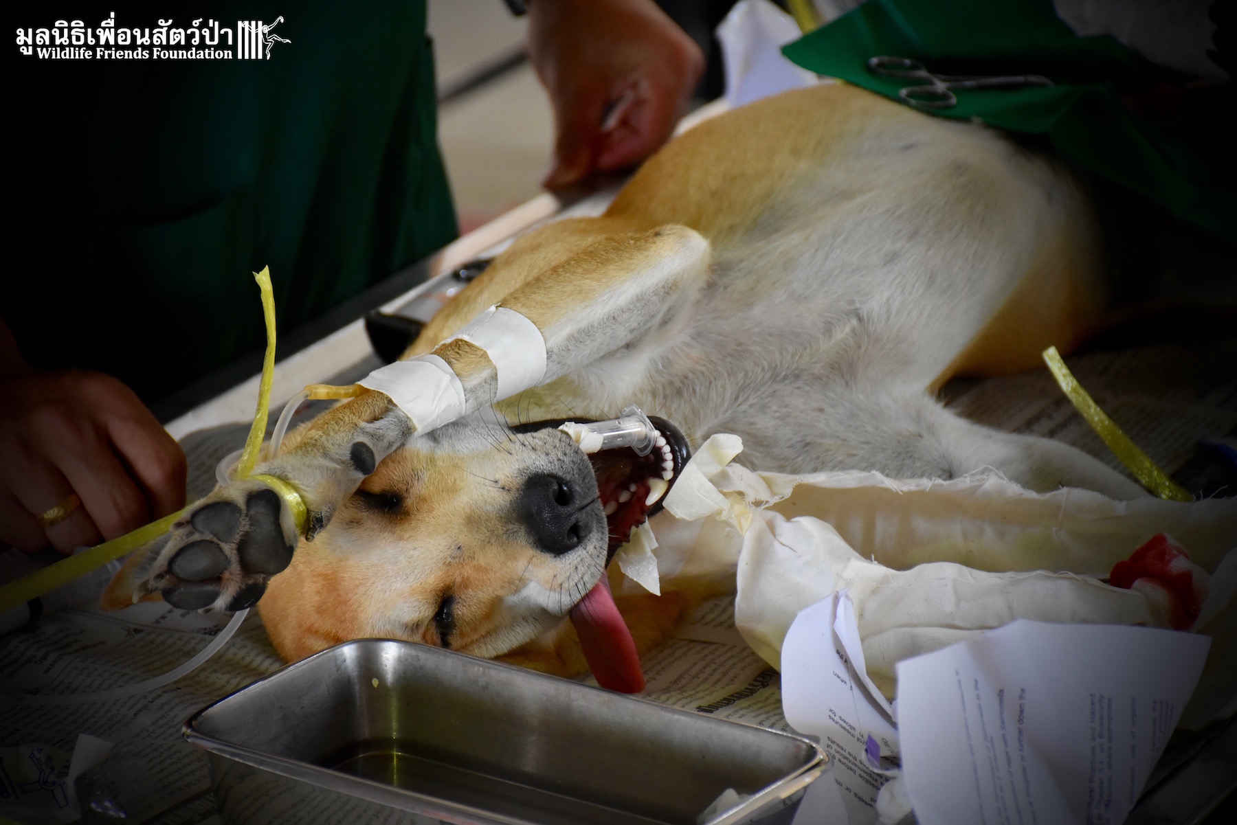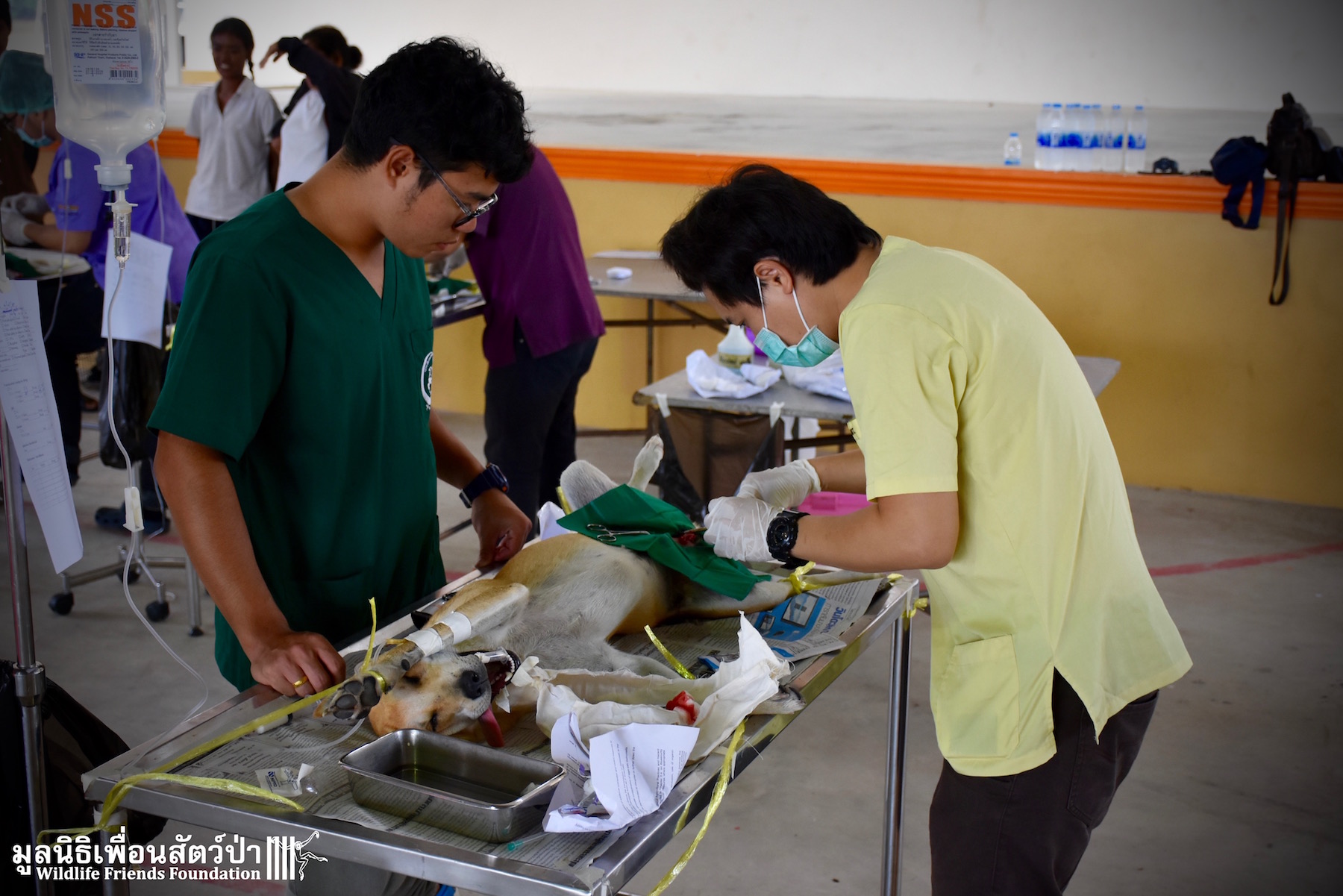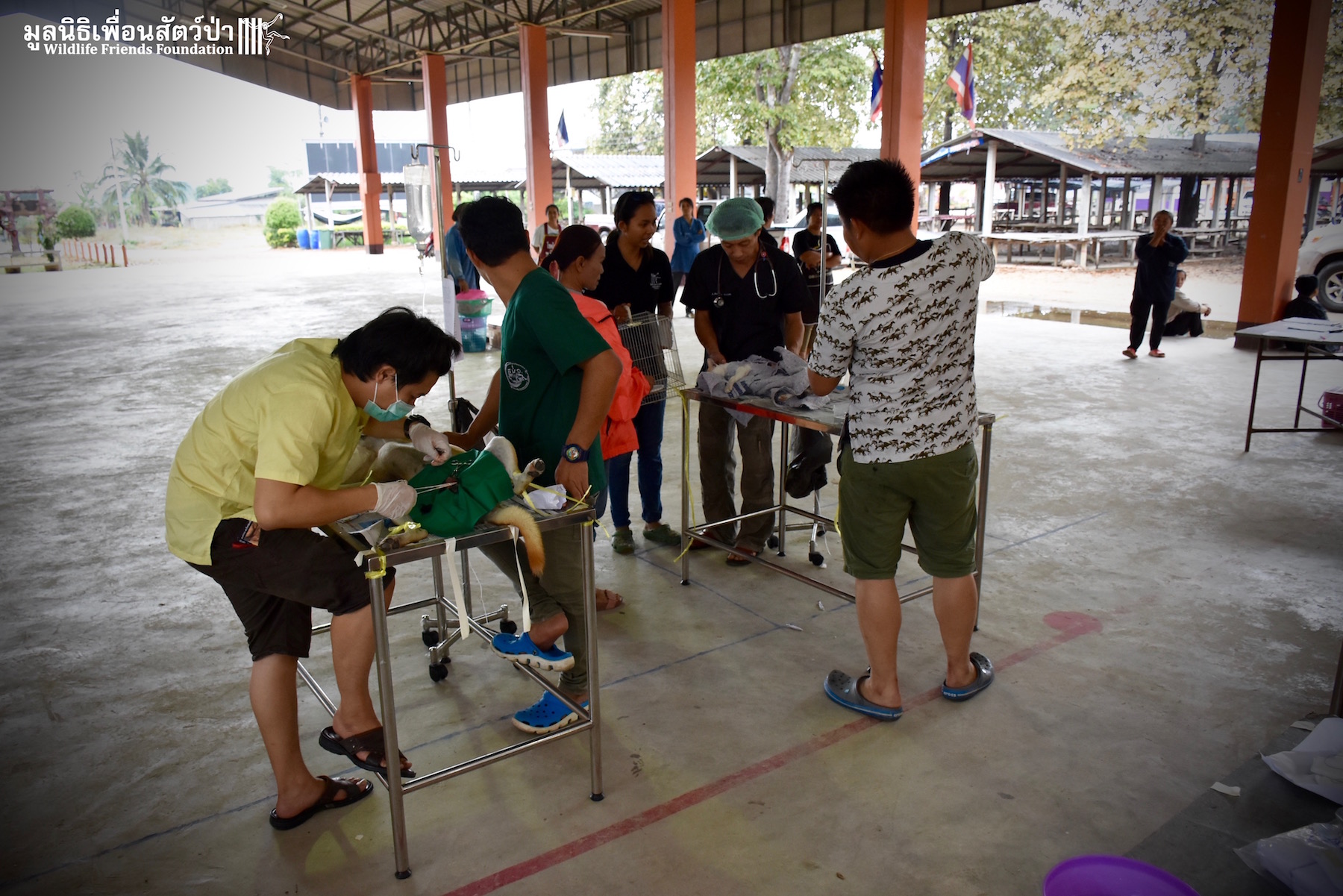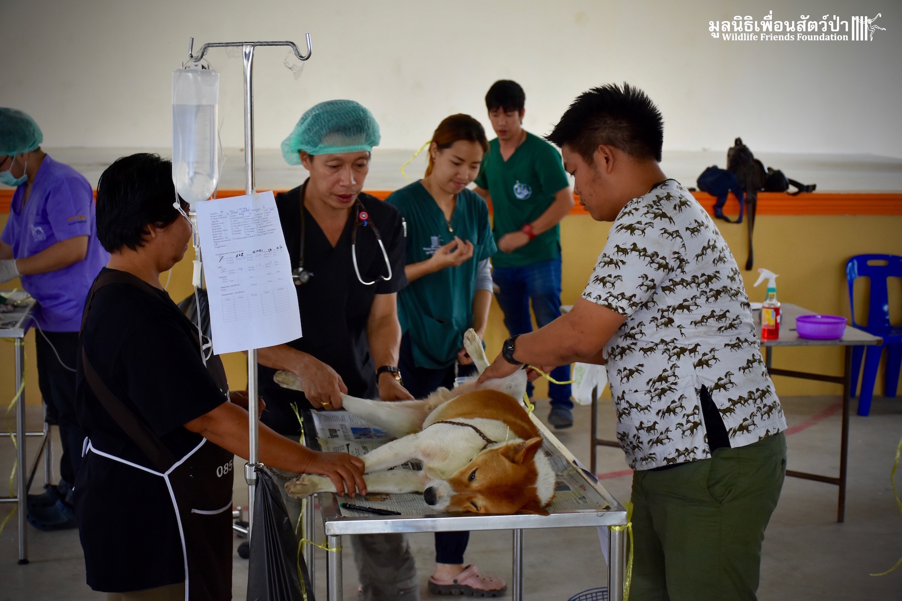 Last week the Wildlife Friends Foundation Thailand collaborated with the Mahanakorn University of Technology Faculty of Veterinary Science on a de-sexing program in the village where the WFFT Wildlife Rescue Centre is located. A team of 11 veterinarians, vet students and assistants joined with the WFFT Vet Team for day of de-sexing, administering rabies vaccinations, and deworming 30 cats and dogs. Mahanakorn University started this self-funded project 5 years ago with the aim of reducing Thailand’s stray animal population, educating the general public and assisting the Thai government with their aim of eradicating rabies from Thailand by 2020. The team has managed to de-sex and vaccinate over 1500 dogs and cats over during the first five years of the project. WFFT fully supports the aims of the project and would like to collaborate further with Mahanakorn University in such schemes.