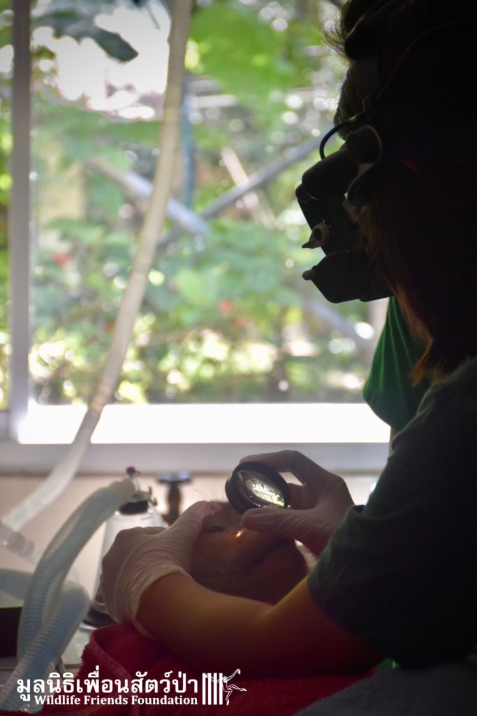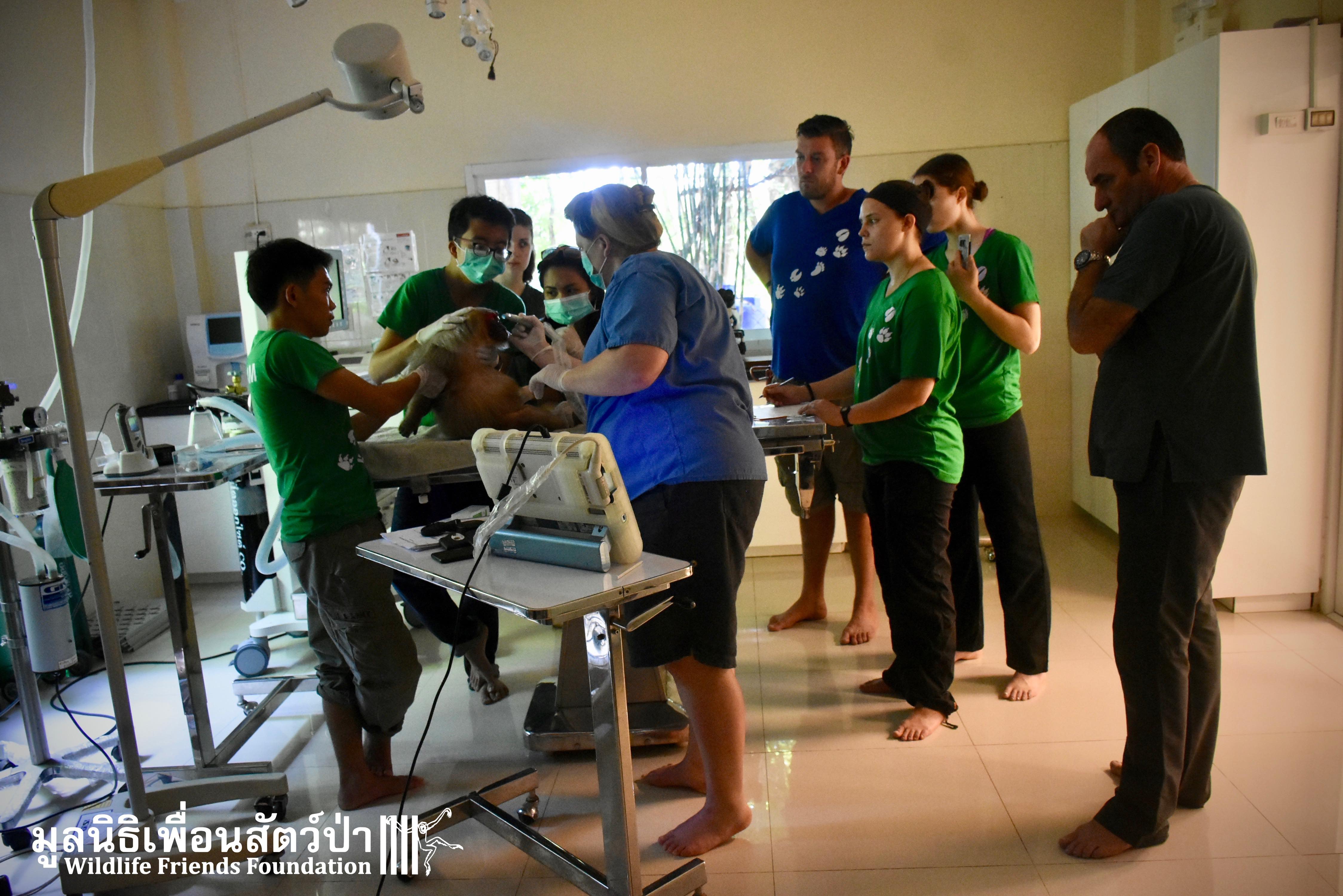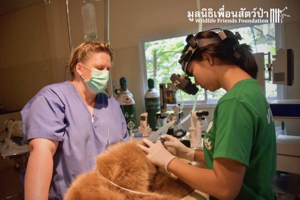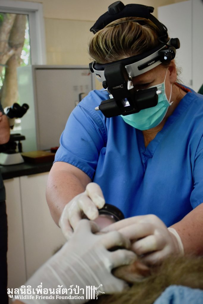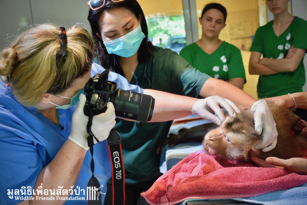 Over the last week Dr. Claudia Hartley, the Head of Ophthalmology at the Bristol Veterinary School has been working with the WFFT Vet Team. Claudia is specialist in Veterinary Ophthalmology and has kindly shared some of her exceptional knowledge and experience with our team. We have been examining the eyes of numerous animals here of the WFFT Wildlife Rescue Centre including gibbons, macaques, bears, dogs and elephants. Some surgical procedures were performed and lots of great advice has been given on the future treatment of the eyes of some of our very special residents. Thank you Claudia for giving us your time and being a pleasure to work with.