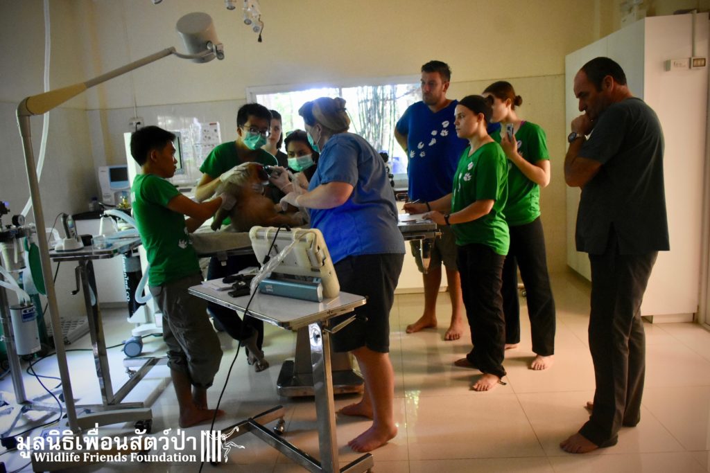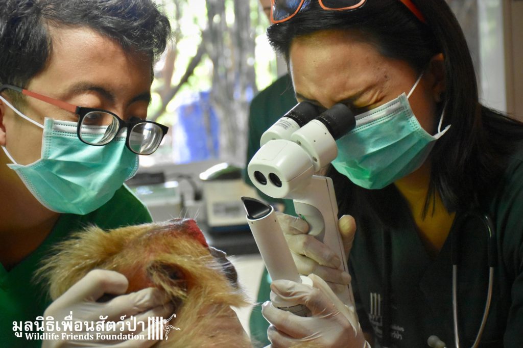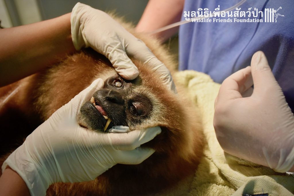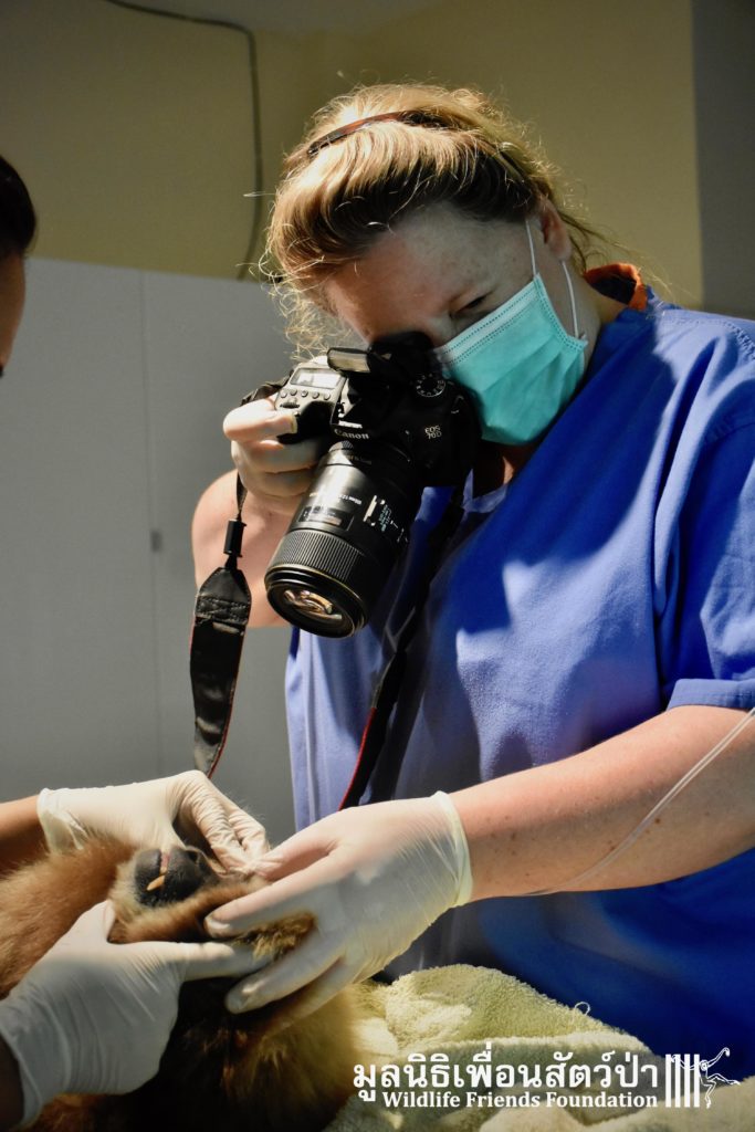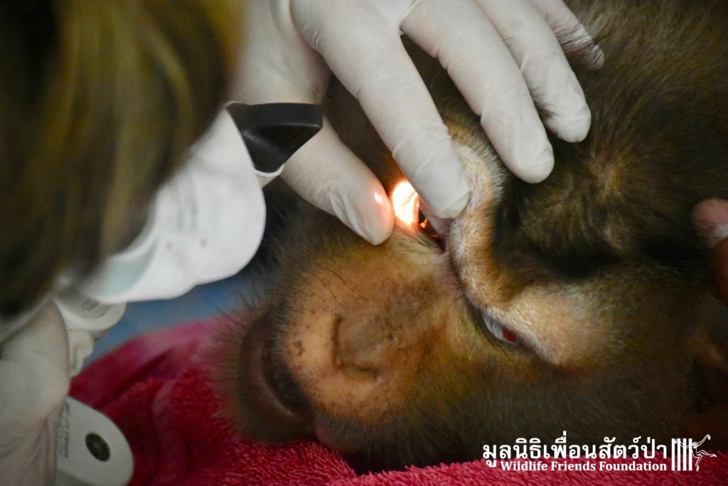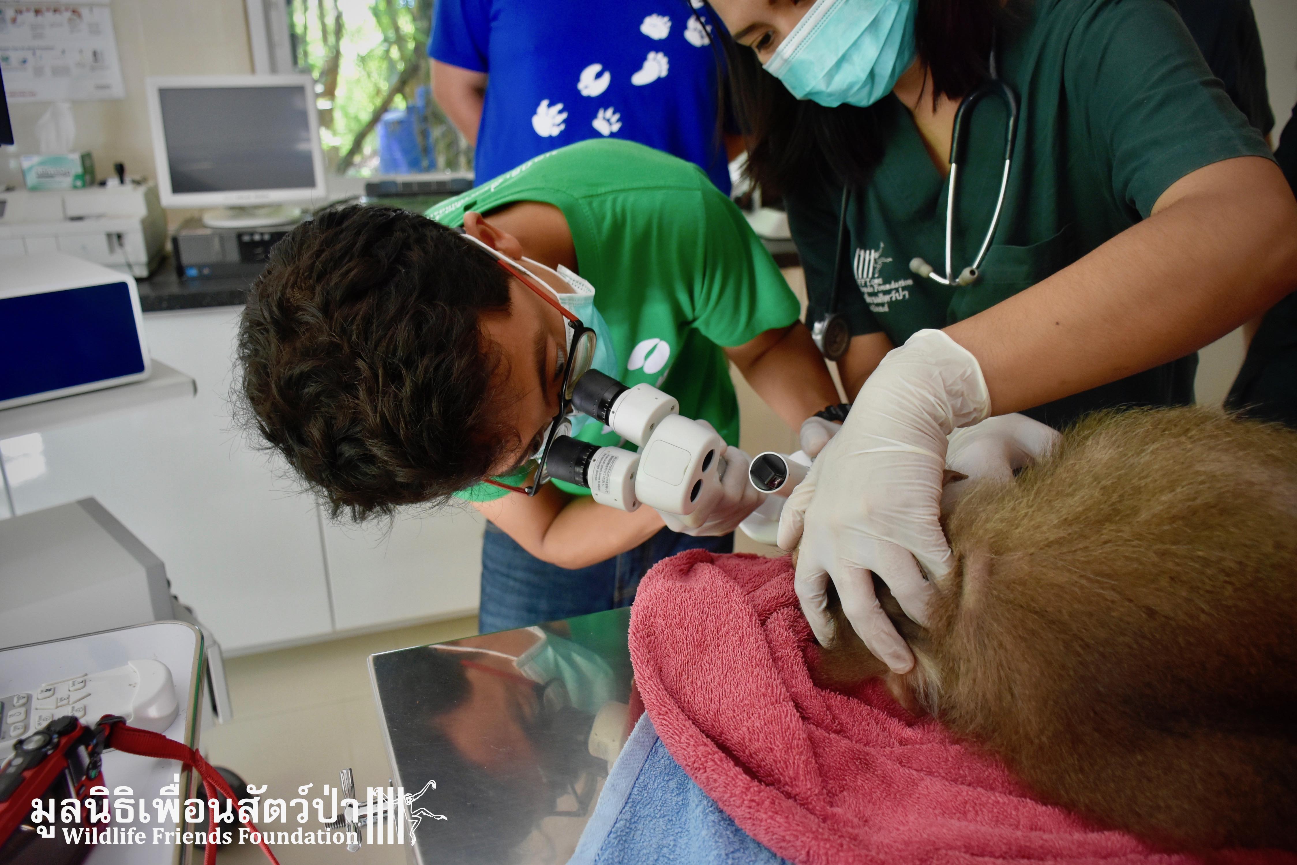 Over the last week Dr. Claudia Hartley, the Head of Ophthalmology at the Bristol Veterinary School has been working with the WFFT Vet Team. Claudia is specialist in Veterinary Ophthalmology and has kindly shared some of her exceptional knowledge and experience with our team. We have been examining the eyes of numerous animals here of the WFFT Wildlife Rescue Centre including gibbons, macaques, bears, dogs and elephants. Some surgical procedures were performed and lots of great advice has been given on the future treatment of the eyes of some of our very special residents. Thank you Claudia for giving us your time and being a pleasure to work with.