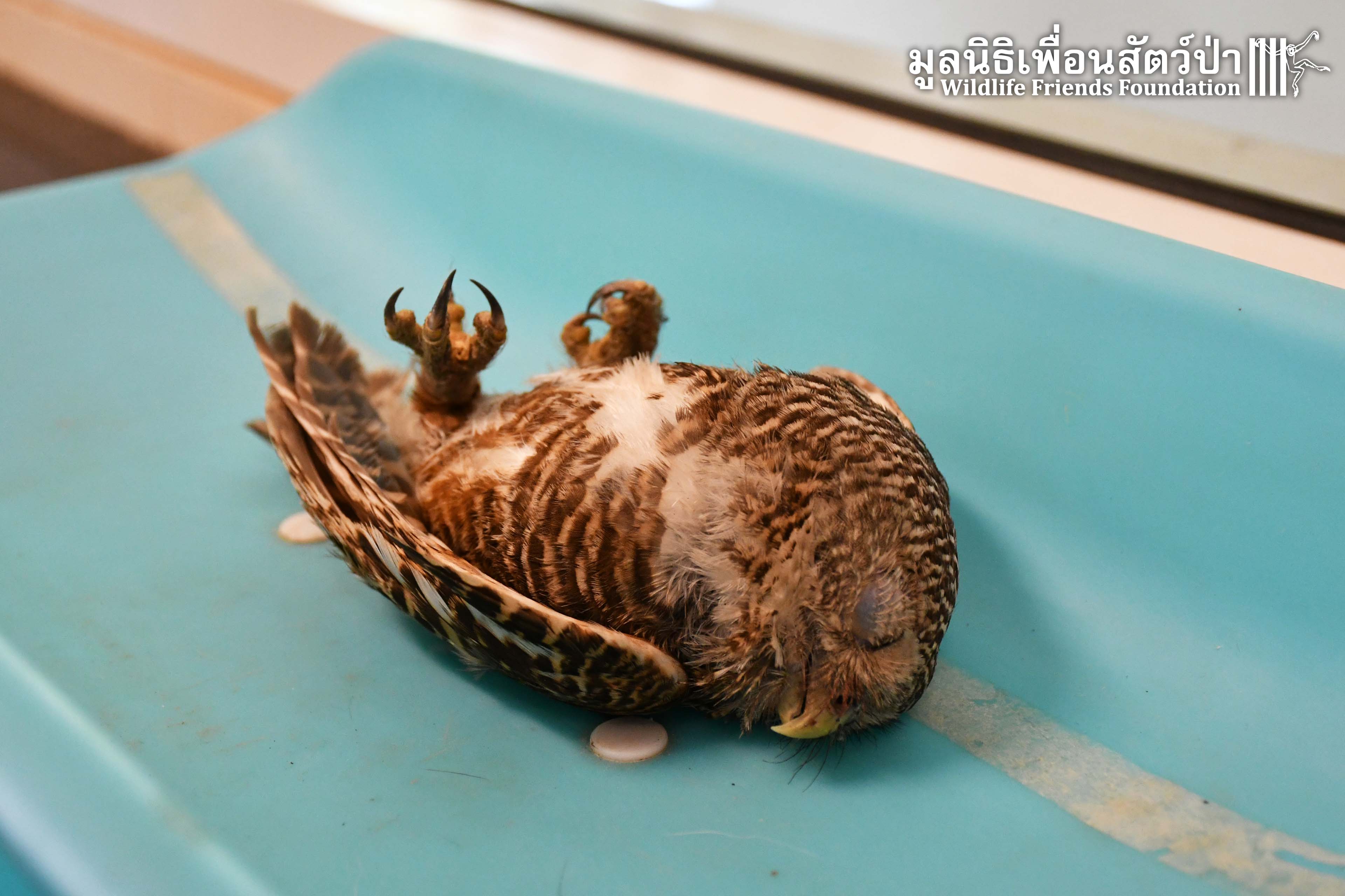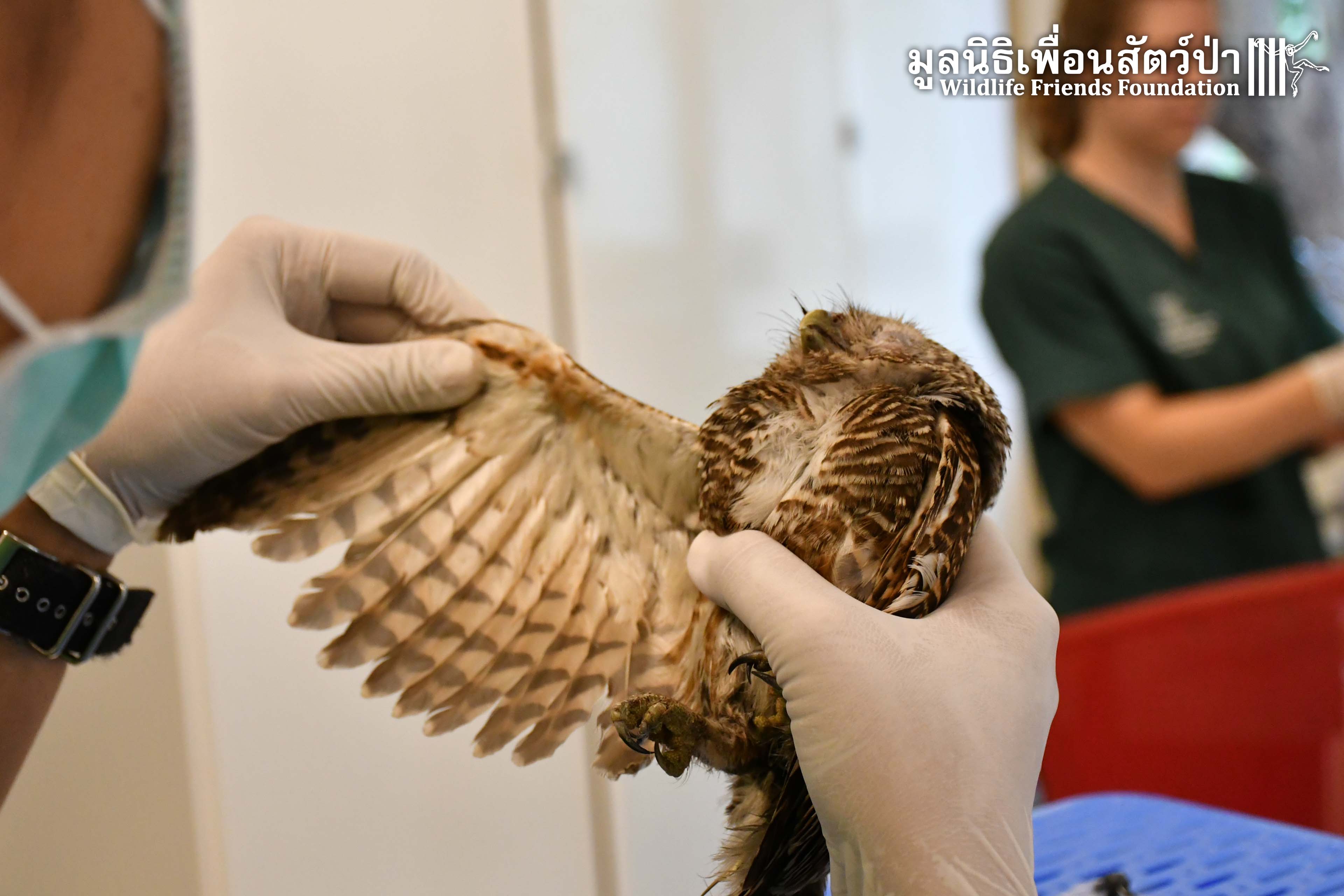 นกเค้าเเมว ได้รับบาดเจ็บ