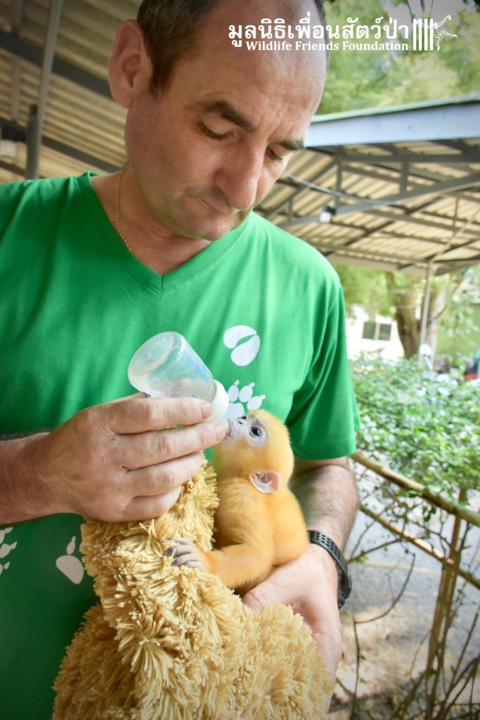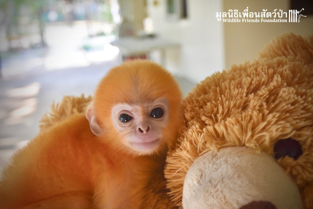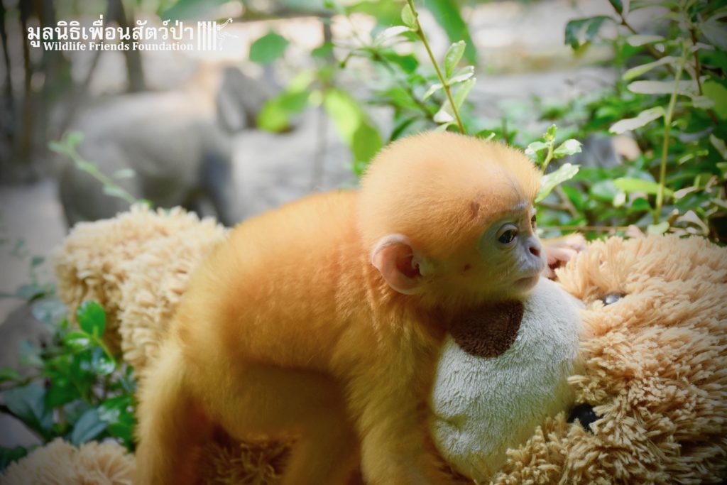 Kanoon, the orphan baby langur (see his story here: https://staging.wfft.org/primates/primate-rescue-orphan-langur-kanoon/), is getting better and better by the day. His injuries are almost completely healed, and his appetite is huge. He has started to learn how to climb a little, under the supervision of WFFT Wildlife Hospital Vet Team, and his dummy ‘mummy’ a large teddy bear.