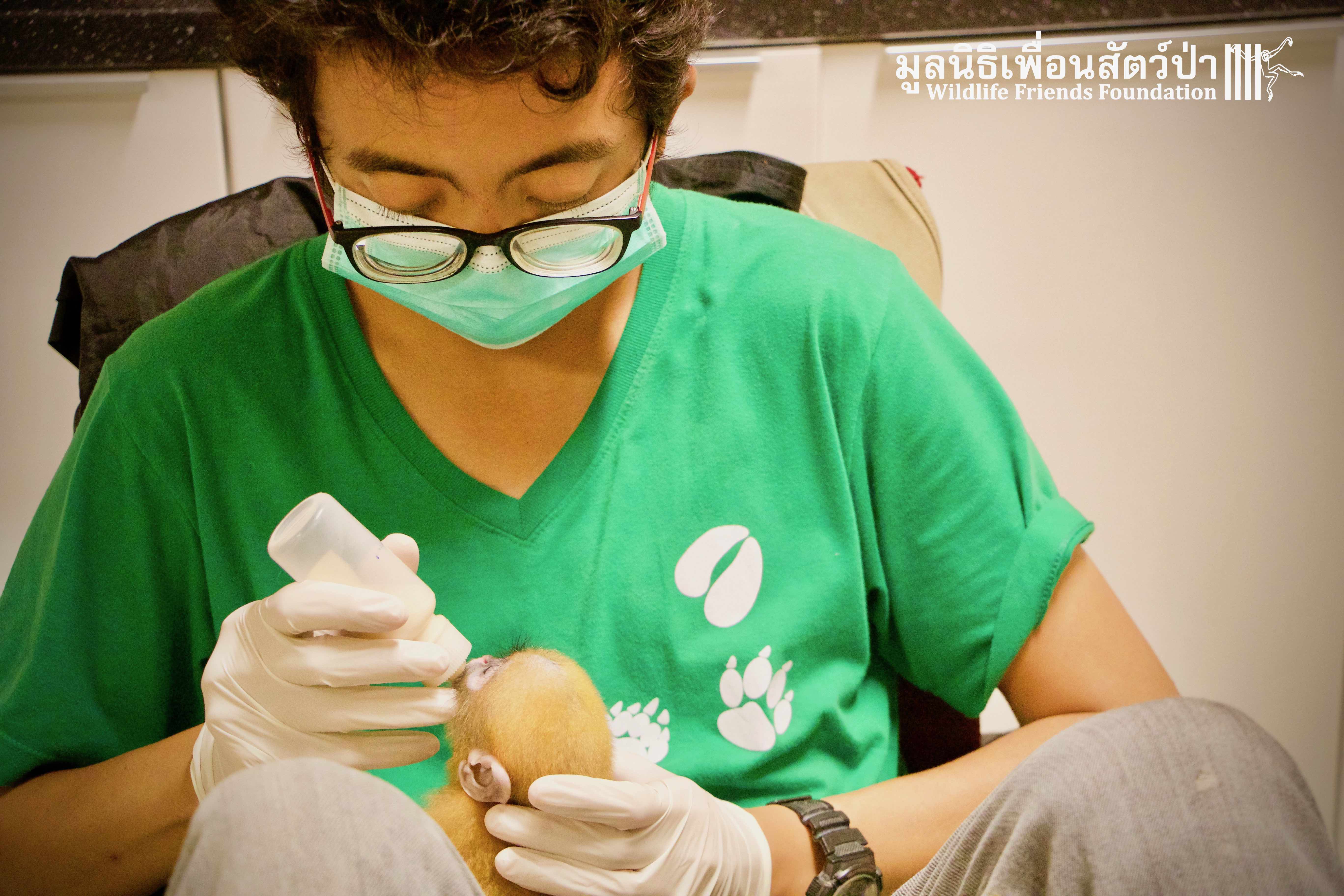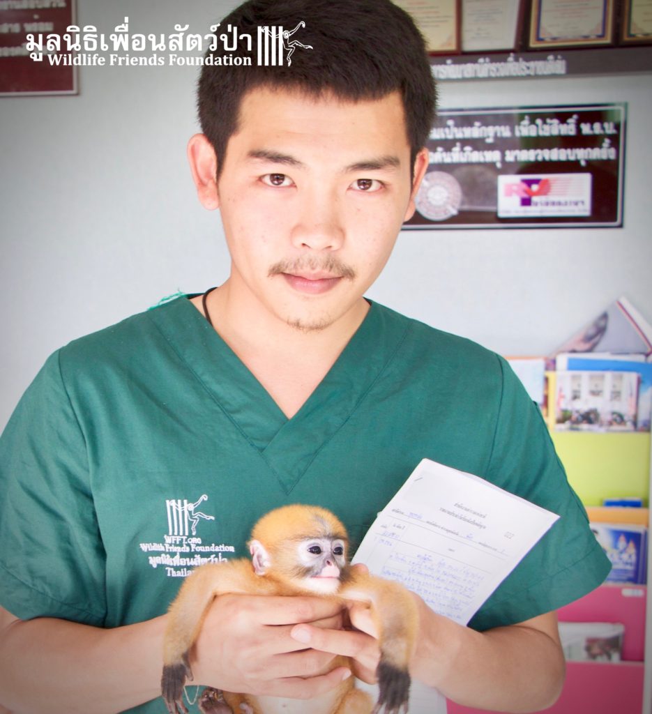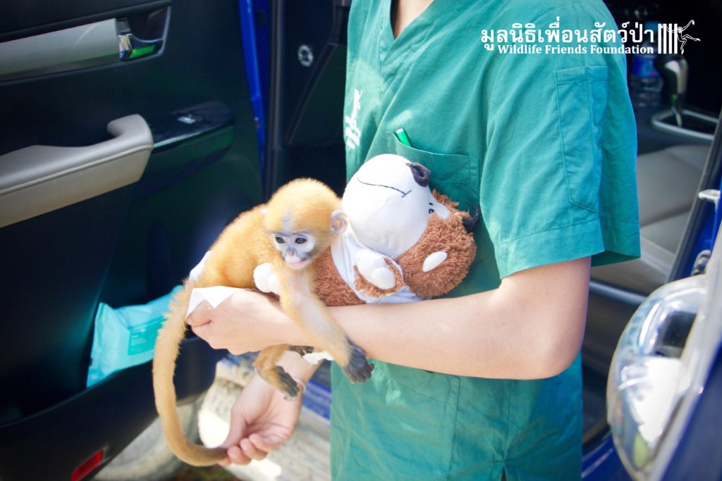 Baby langurs are extremely cute and popular in the illegal wildlife trade. They are also extremely difficult to keep in captivity due to their specialist diet and high maintenance demands. Time is crucial with these delicate little animals and after advising what to feed, and crucially what not to feed, the team arranged a meeting time next morning in Kapong near Khao Sok.