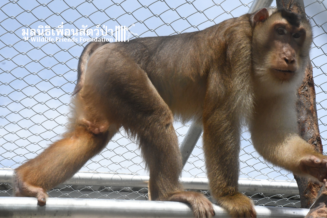 But Kim, Odd, Muern and Saen’s owners did the right thing and gave them a second chance in life. After their quarantine periods, we recently moved these handsome males, who are now living without a chain around their neck, possibly for the first time in their lives, to new enclosures to continue their rehabilitation. They are learning what it is to be a monkey again.