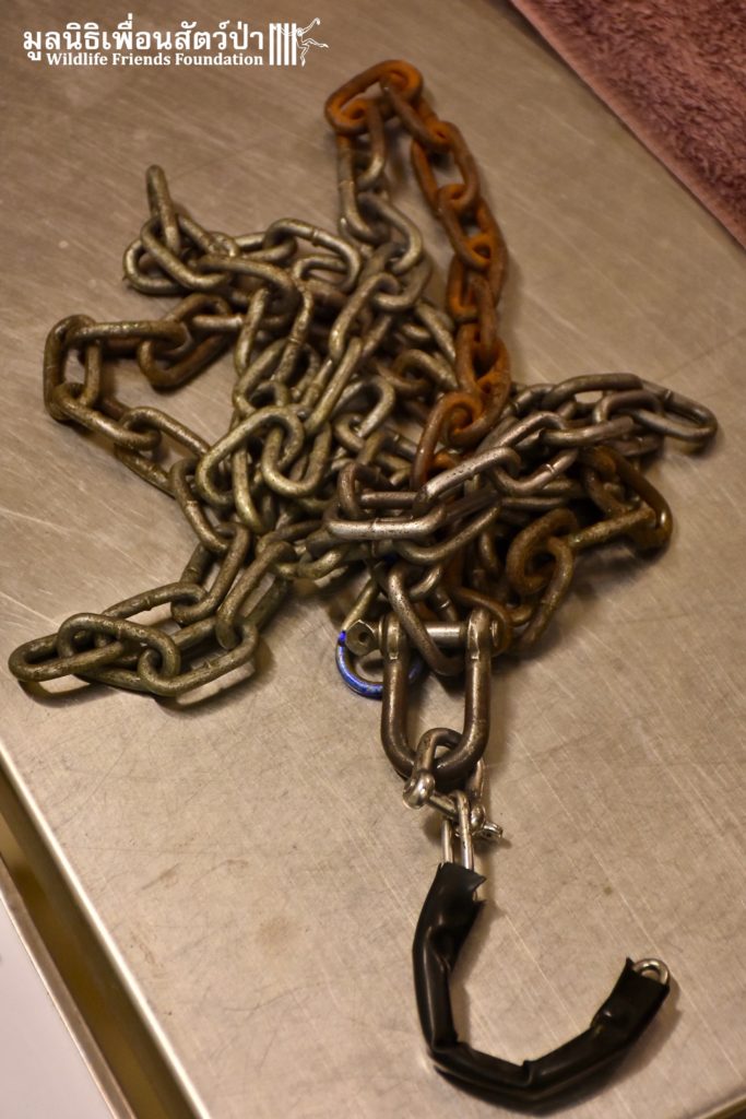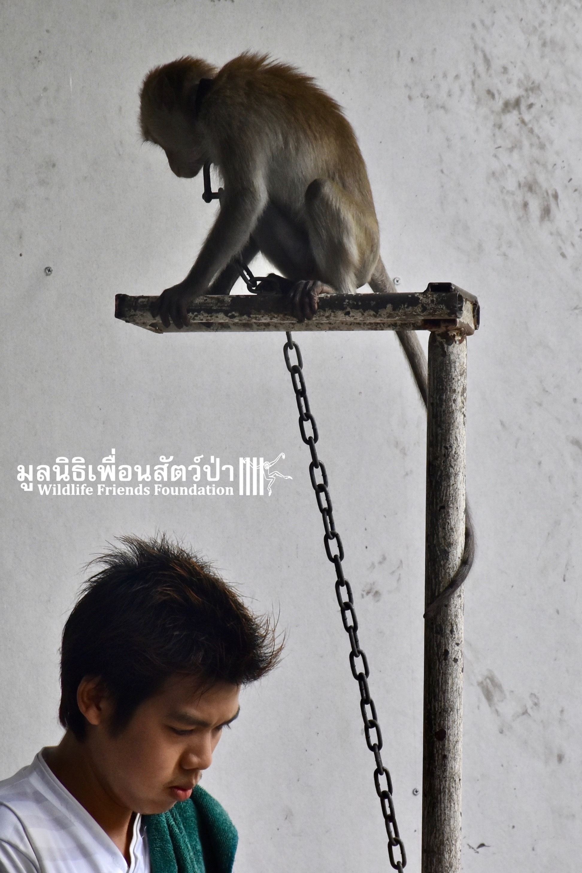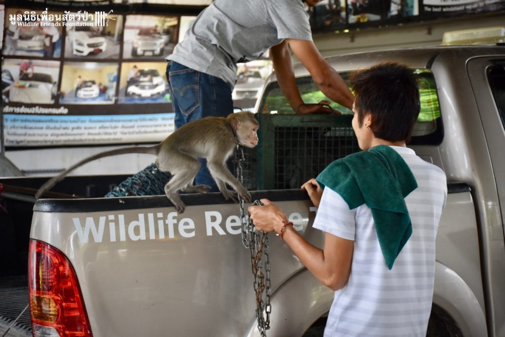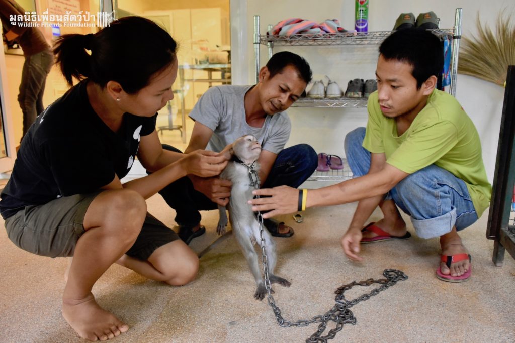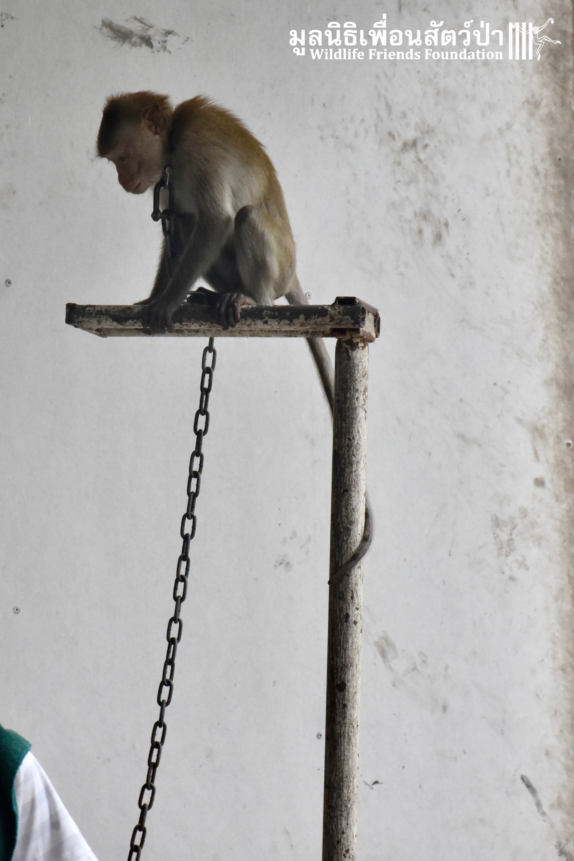 A few days ago the WFFT Rescue Team headed out to help this little guy, meet Tang Mo (Watermelon) the five-year-old long-tailed macaque (macaca fascicularis). Tang Mo was being kept at a petrol station in central Bangkok, confined to a chain this poor guy had nowhere to hide away from the people, pollution or extreme temperatures. Purchased as a pet when he was a tiny baby five years ago, it is likely that he was caught directly from the wild, witnessing the murder of his family or at least his mother. Thankfully we were asked to help by a veterinarian who had found him, and managed to talk the owners into giving him a better life. He was brought straight back to the WFFT Wildlife Hospital.