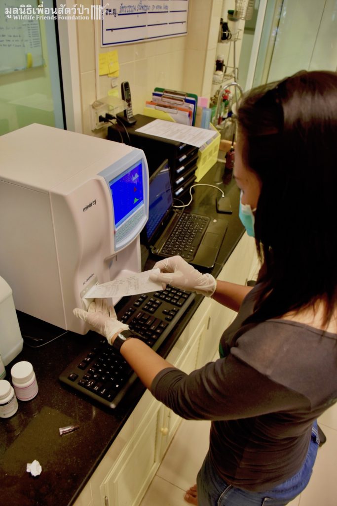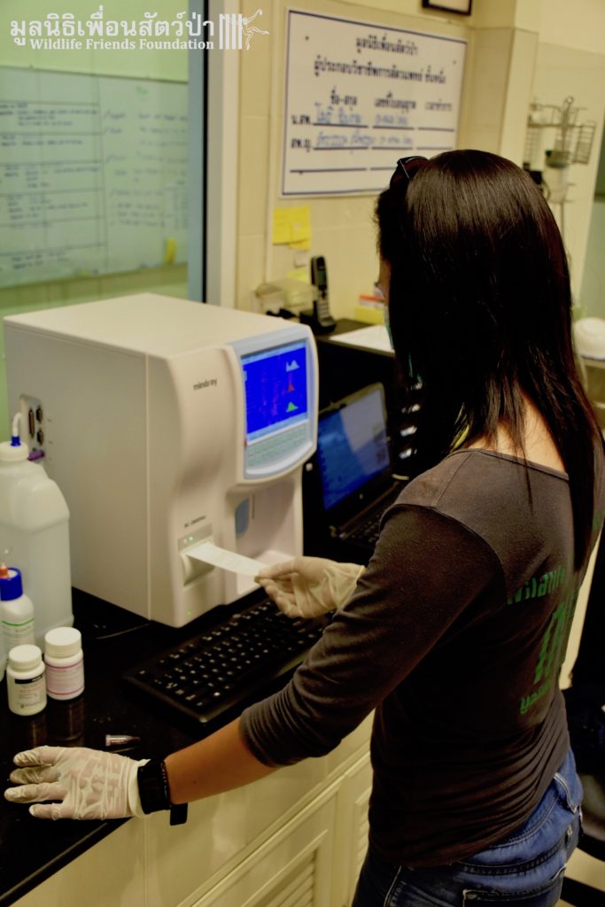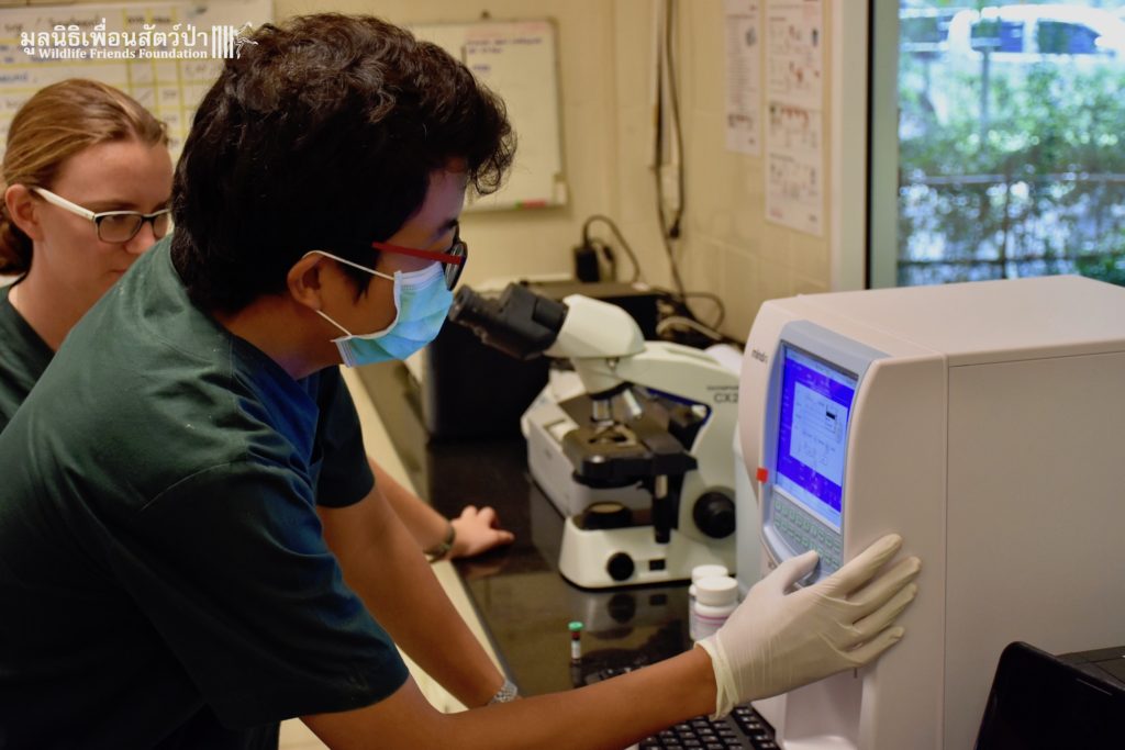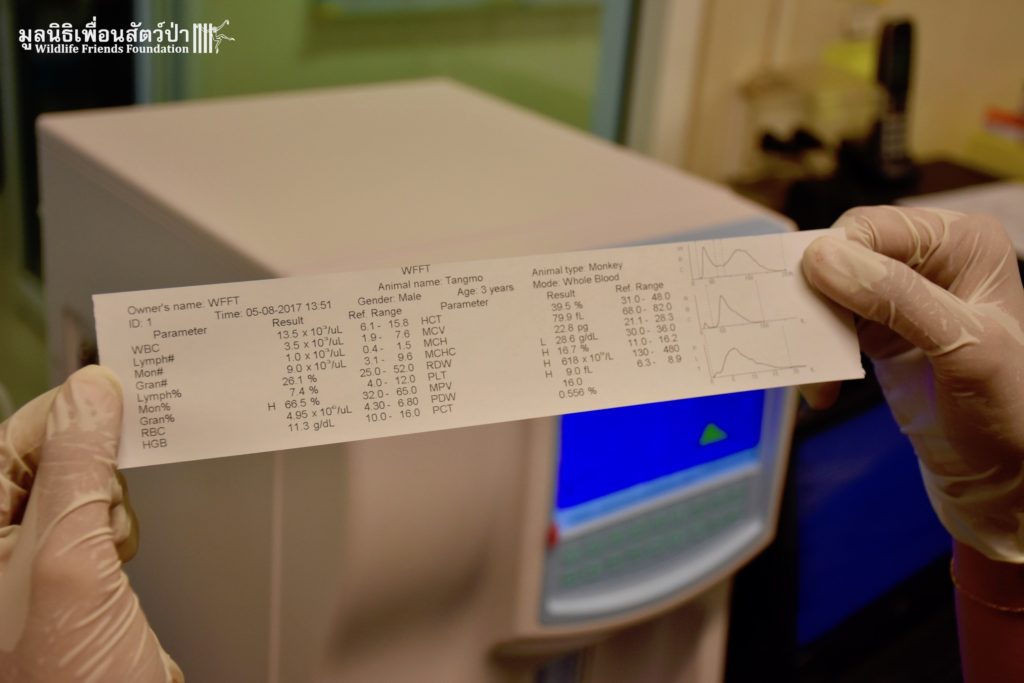 Upon arrival the first task was the remove the chain which was very tight around his neck, if not removed, a few months further down the line it would have ended up embedded within his neck. After we removed the chain, a full health check was performed using the WFFT Medical laboratory, which has recently been upgraded with a new CBC (complete blood count) machine and microscope, this allows us to further analyze the health of every rescued animal. Luckily initial tests show now signs of illness. Little Tang Mo bares the mental scares from his years in solitary confinement but with time he should be able to overcome some of this, and once again join his own species in one of WFFT’s large open macaque fields. We will keep you posted on his progress.