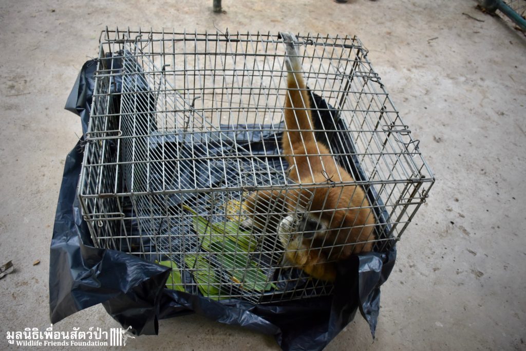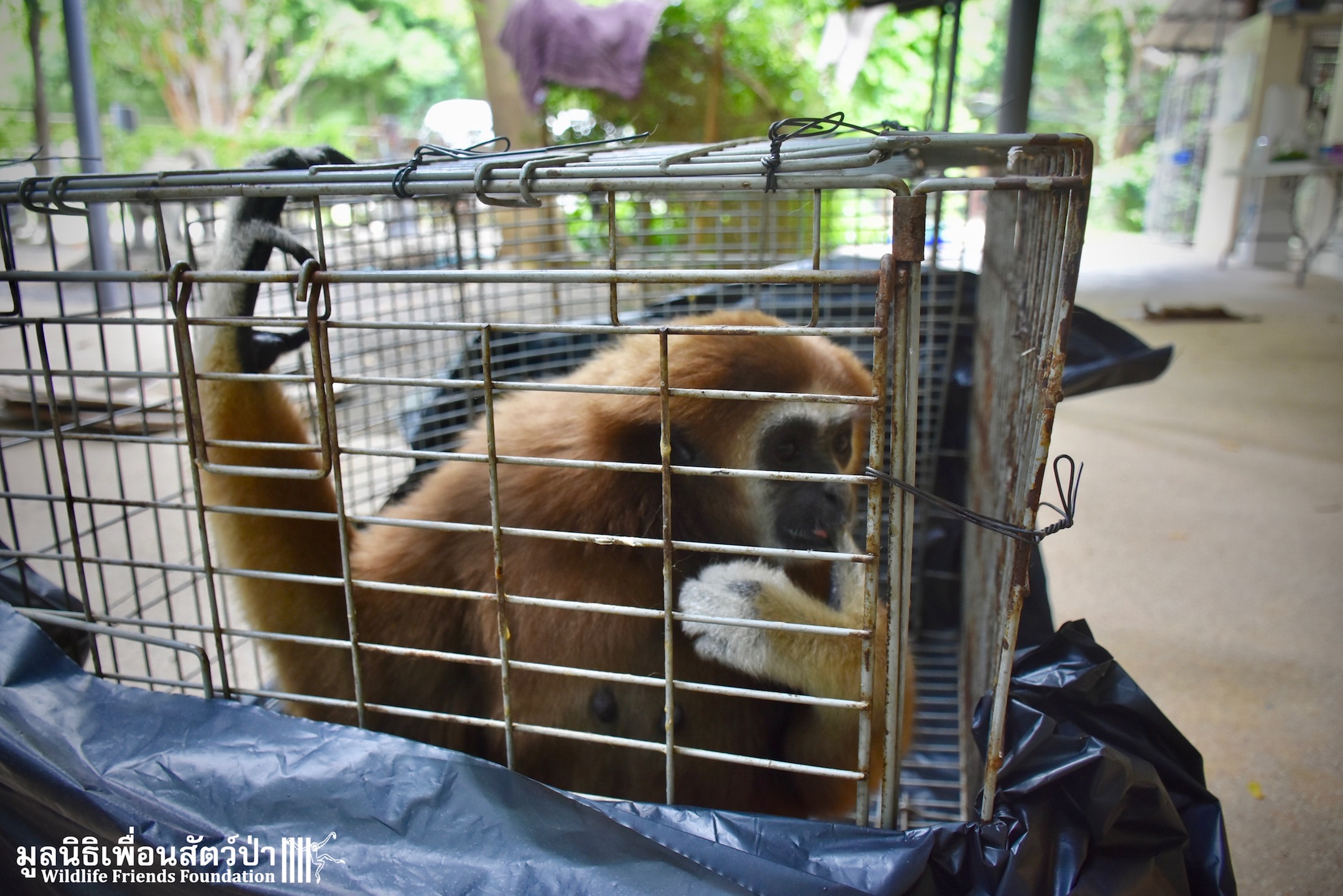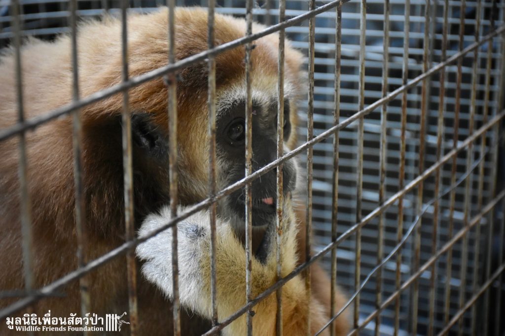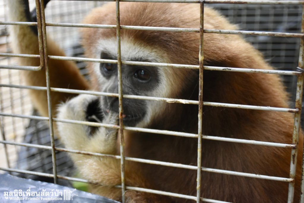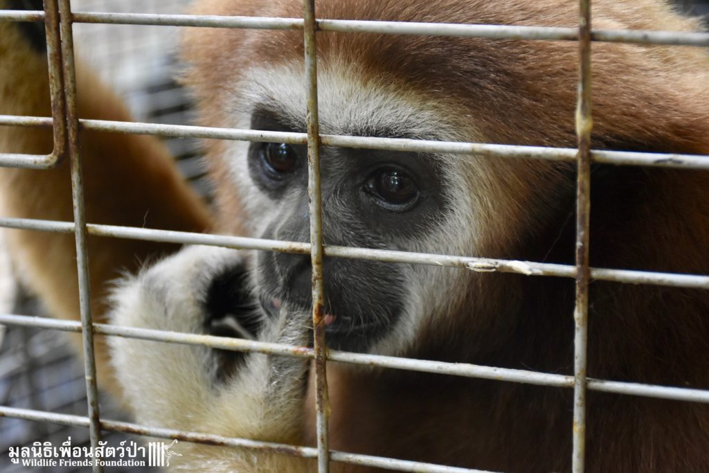 Let us introduce you to ‘Abell’ a 6-year-old lar gibbon (Hylobates lar), another tragic victim of the illegal wildlife trade. She has been kept as a pet for most her 6 years on earth. Her mother slaughtered, she was then caught from the wild and illegally sold on to be a pet. She has been kept inside the house of a family in Bangkok for the last 6 years. As expected for a gibbon of her age, she had started to become more aggressive and less receptive to being treated like a human baby, she had begun to bite her owner. That’s when we received a call to help.