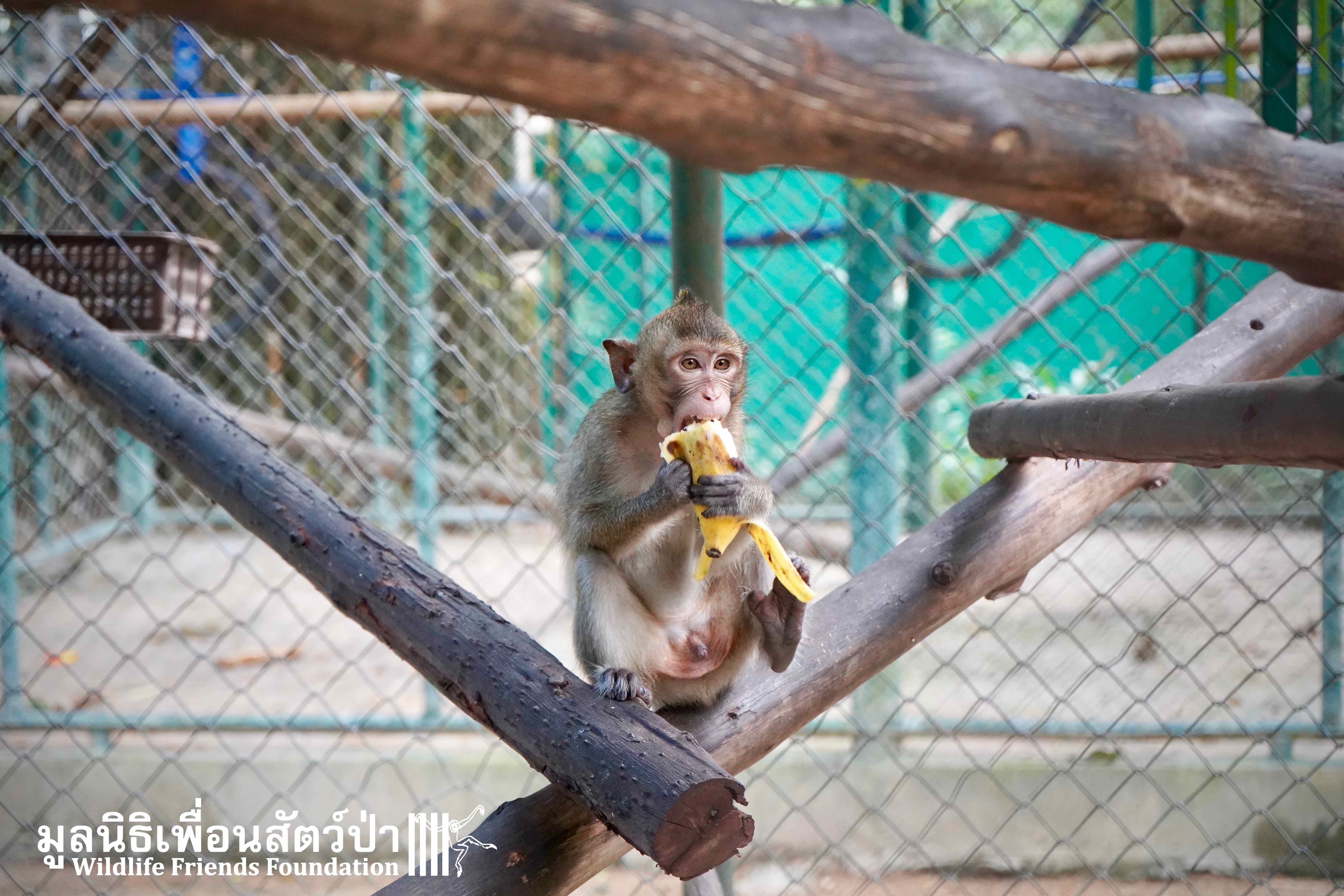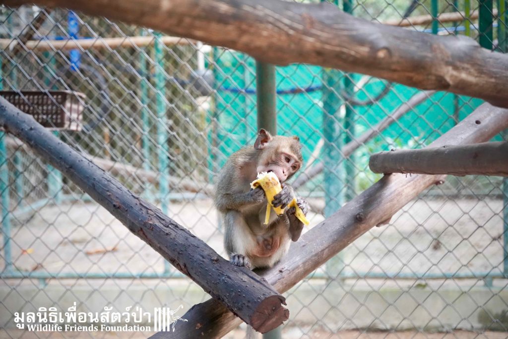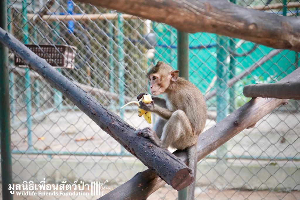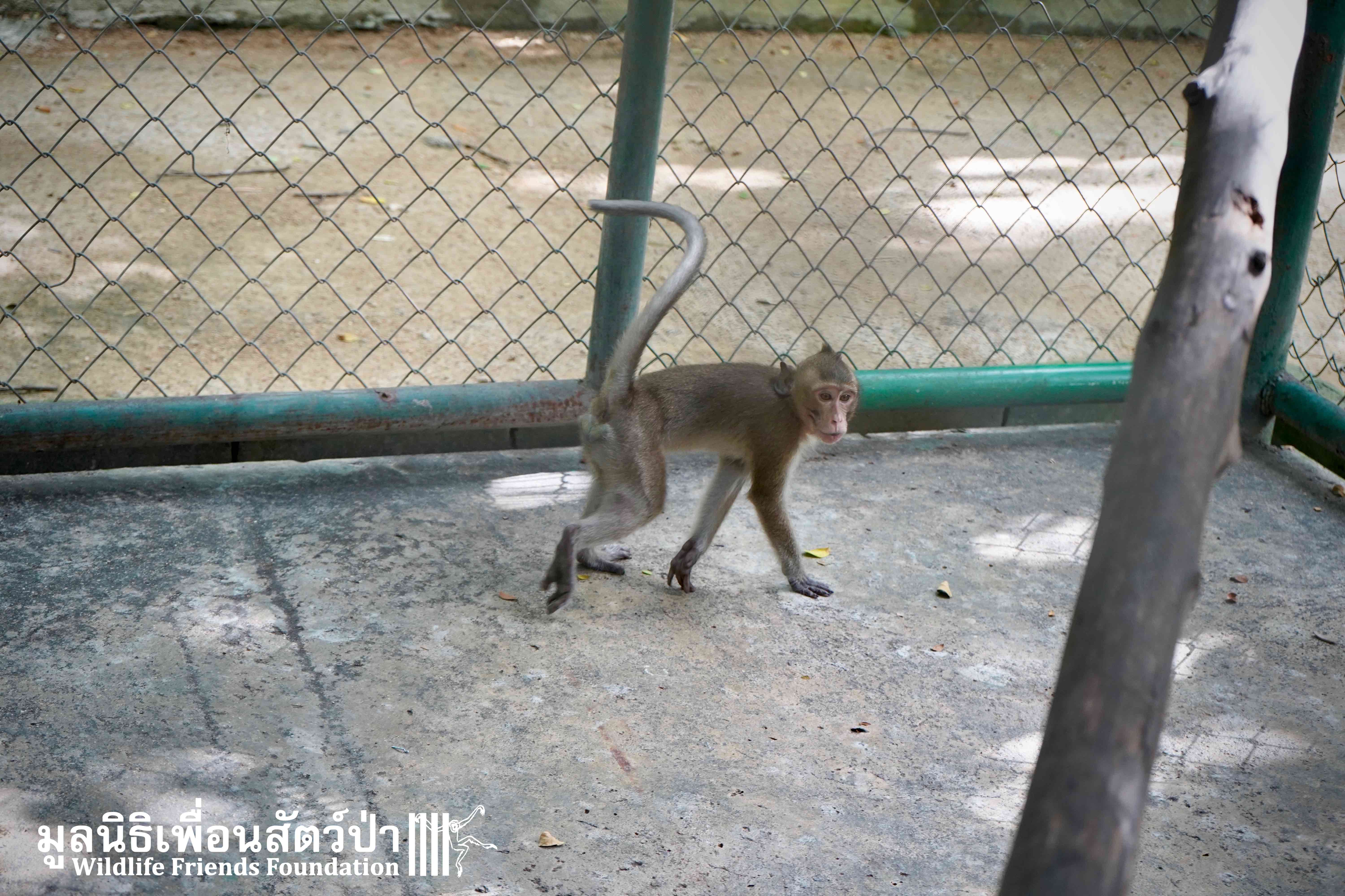 The Russian owner then posted on a web site for Russians living in Thailand hoping that someone could take him. They may have realised that keeping a macaque as a pet is actually illegal and could have landed them in trouble with the authorities. Fortunately the lady who contacted Edwin acted as a mediator and managed to coordinate his rescue. Having only picked him up from the Russian on the morning of the rescue she knew little of his past. Likely taken as a baby from the wild, his mother would have been killed to allow his poachers to catch him. He would then have been sold as a pet in the lucrative wildlife pet trade. Though highly illegal it is somewhat common in Thailand. Baby macaques seem super cute and are seen as something of a status symbol. Unfortunately they are very high maintenance as pets and quickly grow into adults that can be destructive and dangerous. With long lifespans macaques are a huge commitment that most people cannot handle past the baby phase. They are then often banished to inadequate cages and unable to exhibit normal behaviour in solitary confinement.