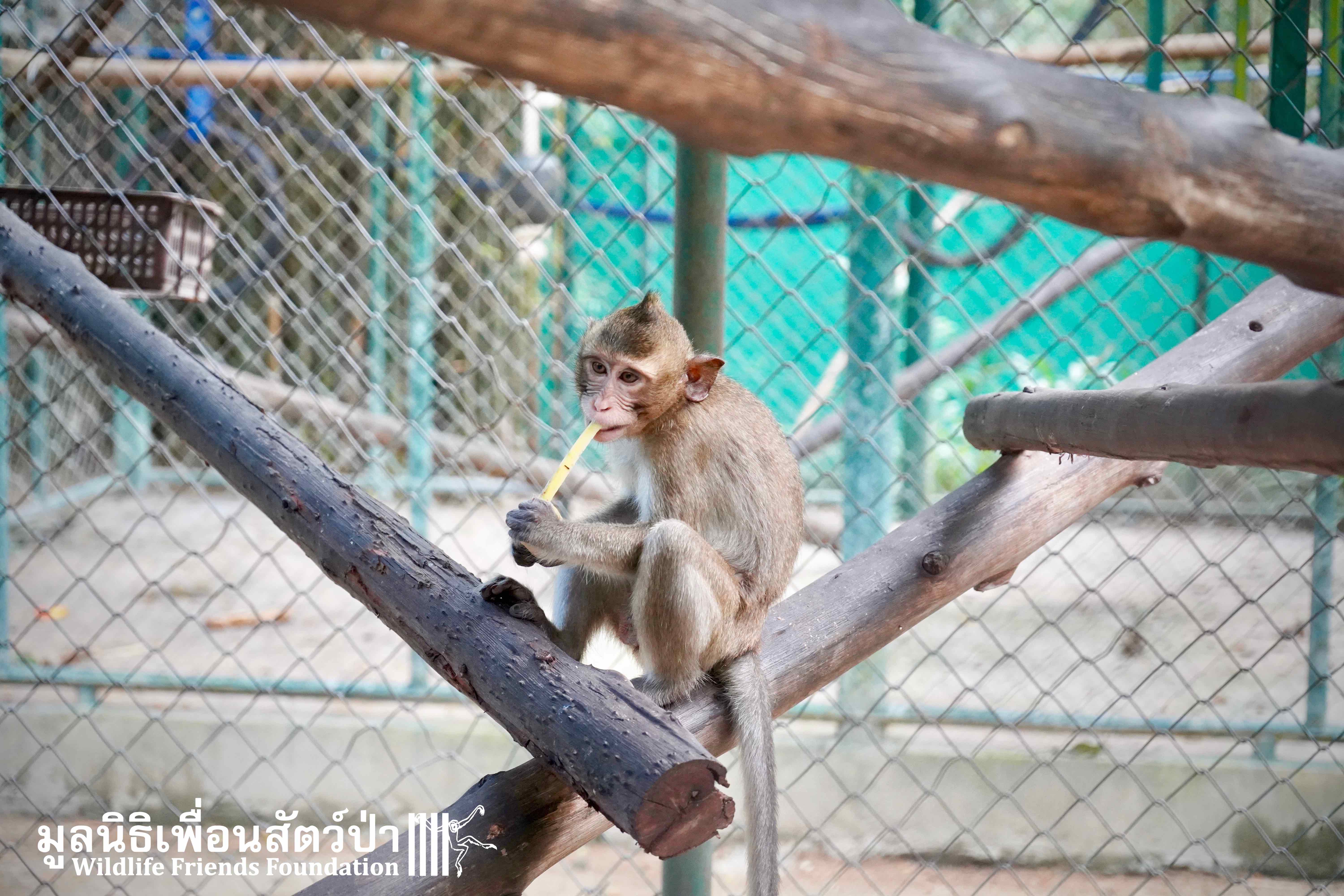 John was bought by a Russian living in Thailand two years ago as a pet. They now could not deal with him as a pet as he tended to bite when handled and was destructive and messy. No fault of John. As a young macaque he has a lot of energy to burn off and is a wild animal not a cuddly living doll to be mollycoddled.