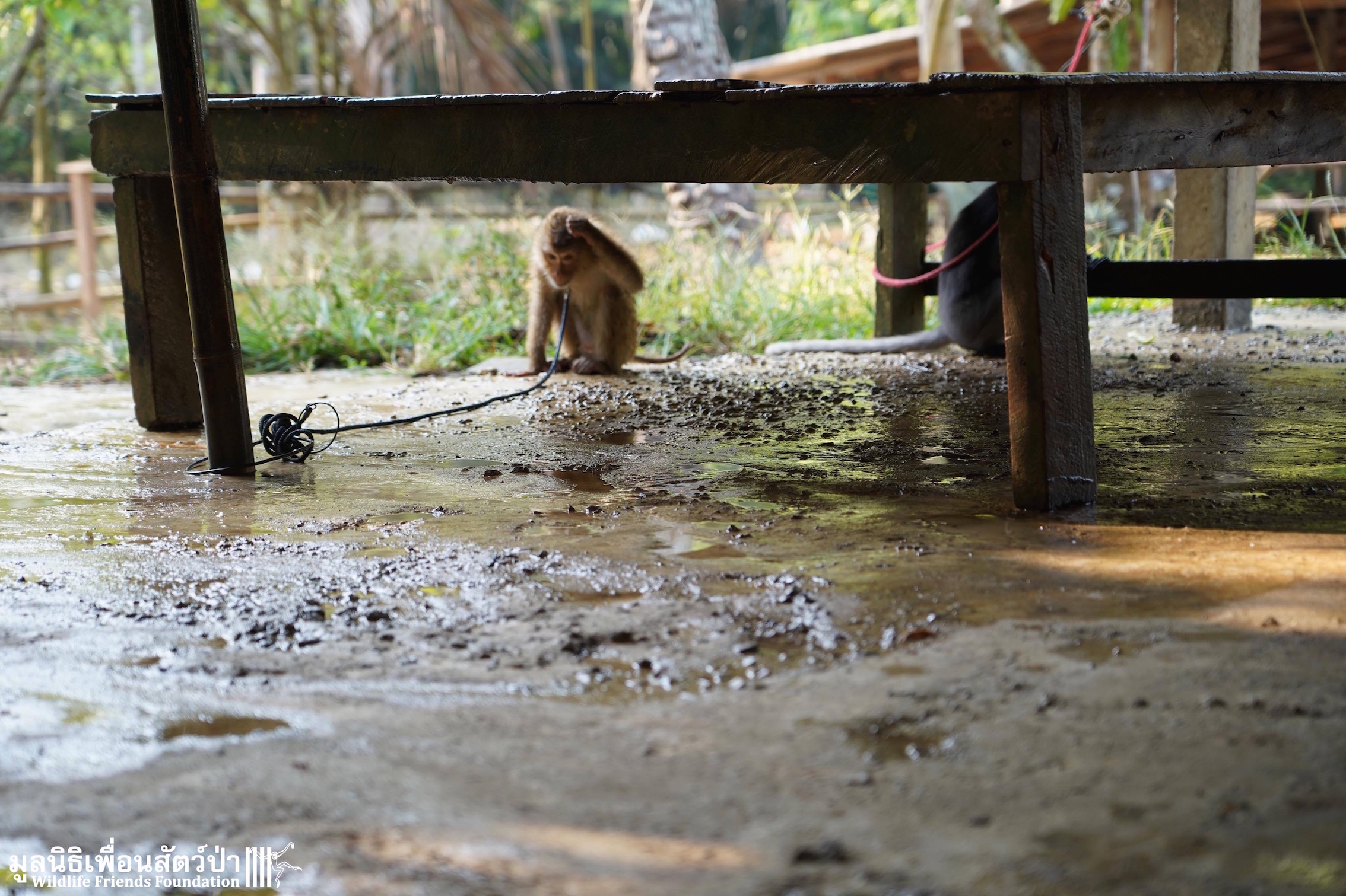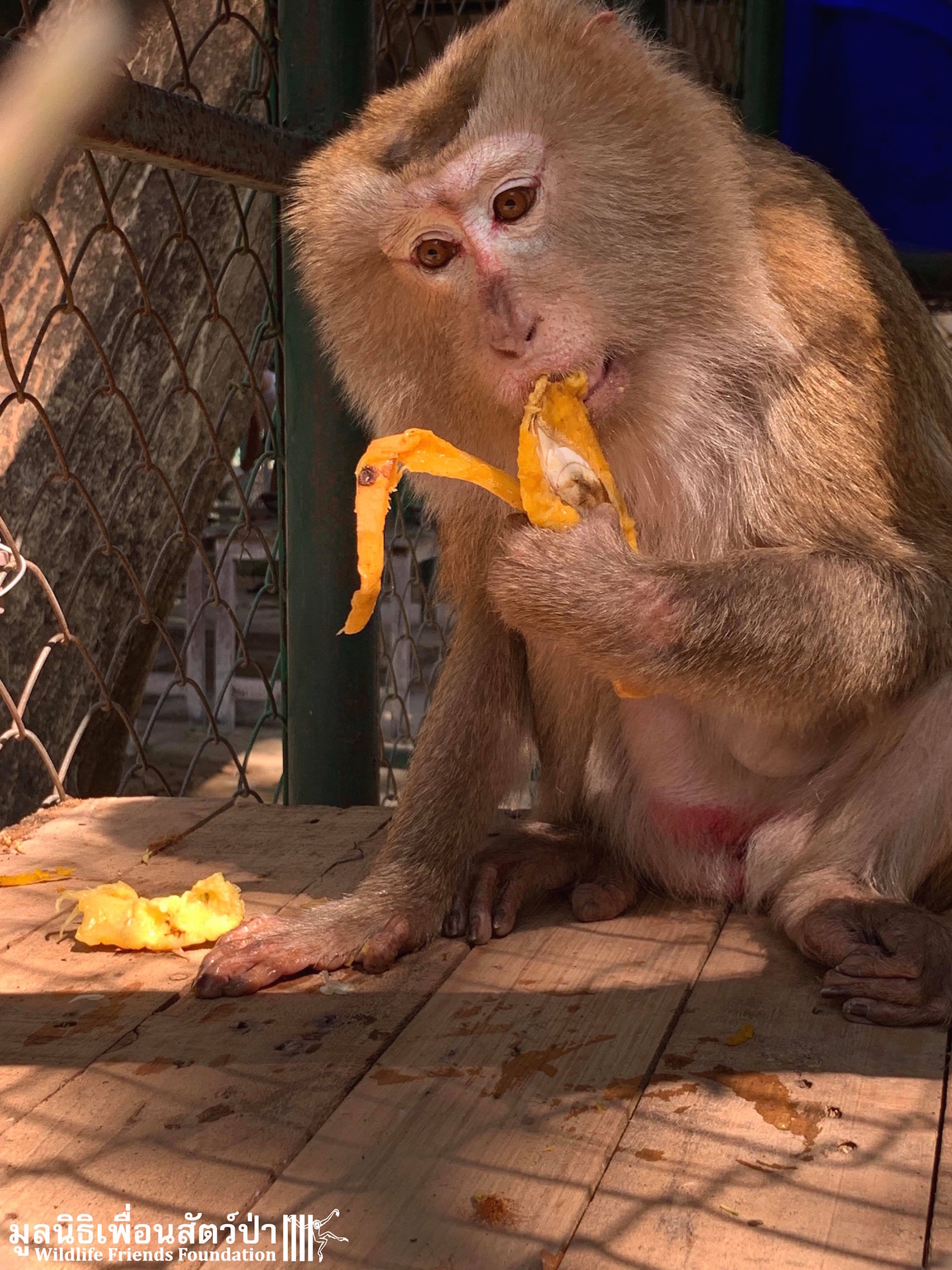 Two macaques were living in a temple just north of Chumphon. A local human rescue team had captured a male and female Northern pig-tailed macaque after they came into conflict with local villages. These two were fairly tame and had clearly been kept as pets before escaping or being dumped. With no natural instinct to find food they had sought out humans as their only known provider.