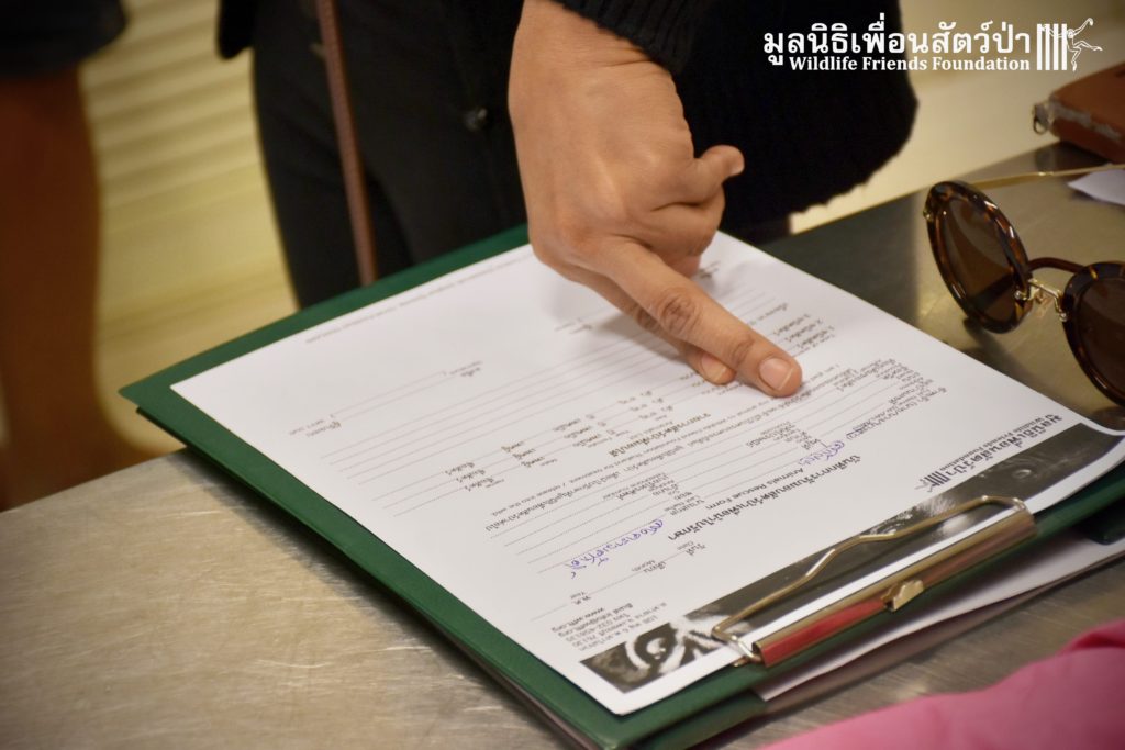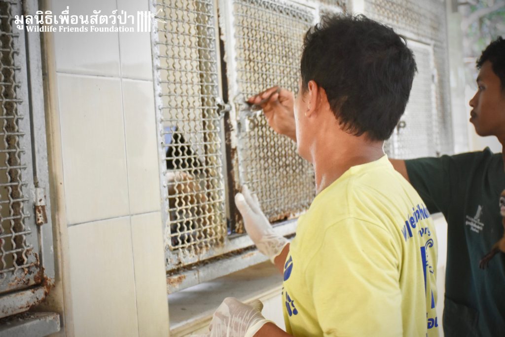 On arrival the WFFT, the team were surprised to discover two oversized animals. They were two of the biggest lorises we have seen, in both size and weight. The actual owners, were feeding them with chicken, fruits such as mango but not pineapple (they don’t like it). After a health checkup, our 2 friends spent a few days in a holding in the Wildlife Hospital so we could observe them. Yesterday, they we moved to a larger forest enclosure, were they can have some piece at last.