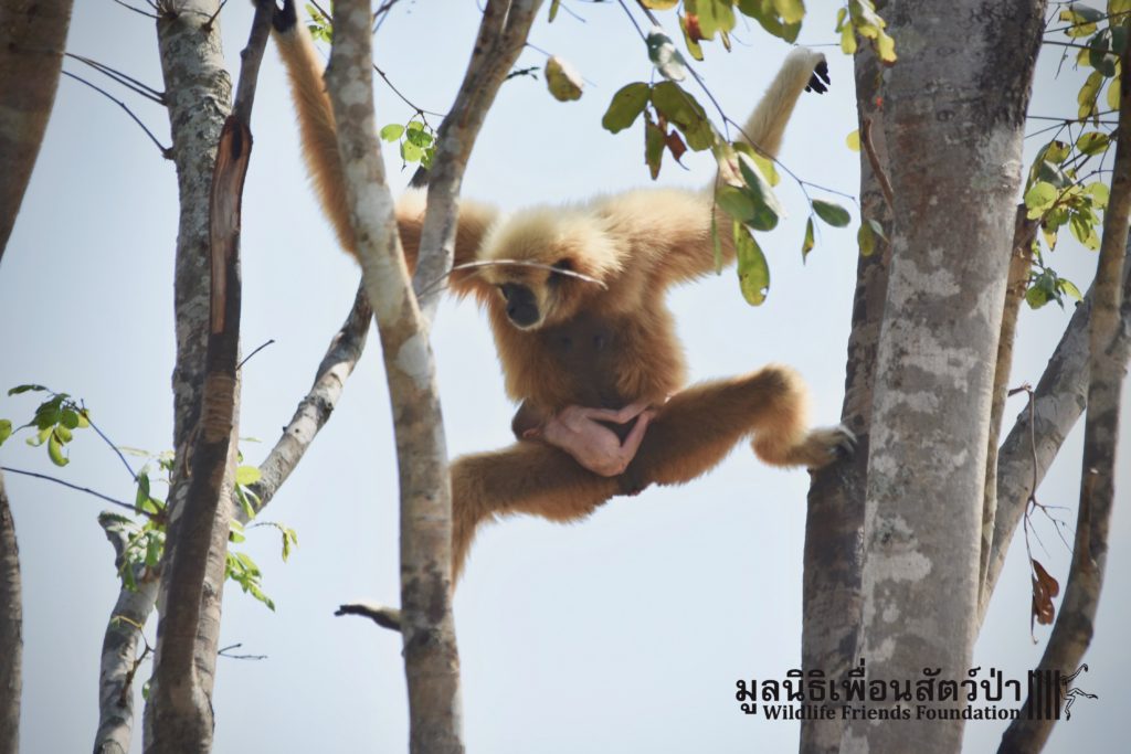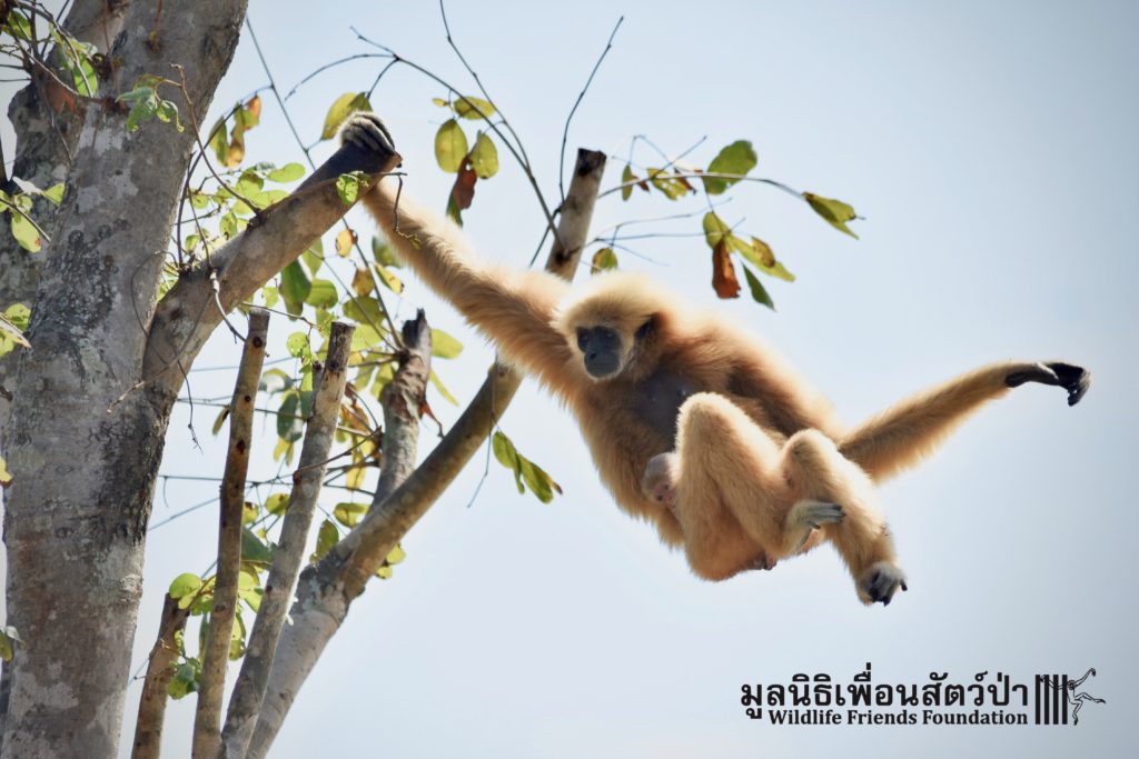 In 2010, WFFT partnered with the Thai Department of National Parks and Mahidol University to embark on a groundbreaking gibbon release and research project within the Lum Nam Pai Wildlife Sanctuary in Northwest Thailand. The aim of the project was to re-establish a viable, self-sustaining population of white-handed gibbons (Hylobates lar) in a remote protected forest. The gibbons went through quarantine and health screening, DNA analysis and some rehabilitation and pre-release training at the WFFT Wildlife Rescue Centre prior to being taken into the forest to the release site. A ‘soft release’ strategy was employed, holding the gibbons in enclosures for a period of time prior to release, to assist them in adjusting to their new environment. Post-release support was provided, such as supplemental feeding and radio tracking.