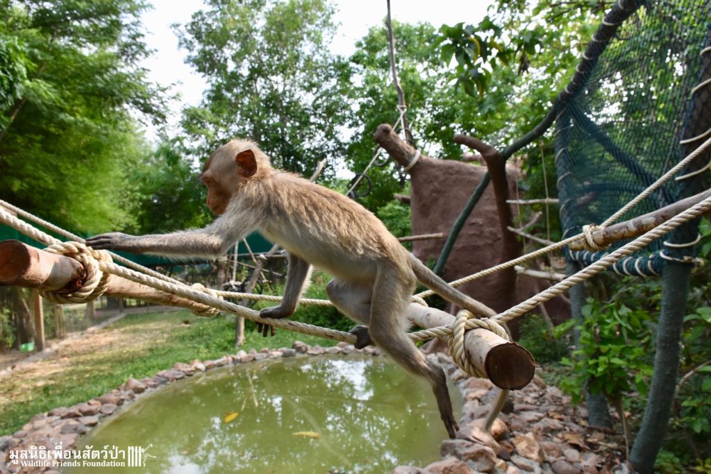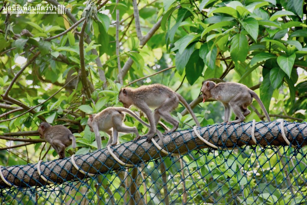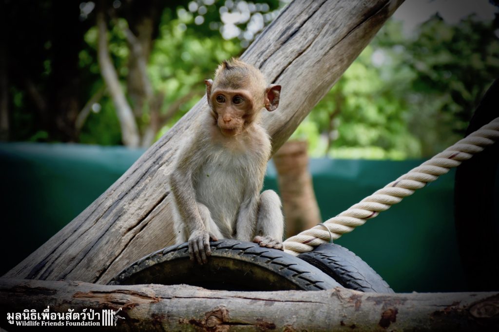 The 7 youngest members of our primate family here at the WFFT Wildlife Rescue Centre have just progressed to a large open top field environment. These little orphans have all had a rather distressing start to life, three of them are missing limbs, now they can start to be little monkeys once again. This new home is providing these special little ones with plenty to keep them happy and healthy, a large pool, lots of natural foliage and, an endless amount of things to climb and jump all over. As you can see from these images, they seem to be having a wonderful time in their new home.