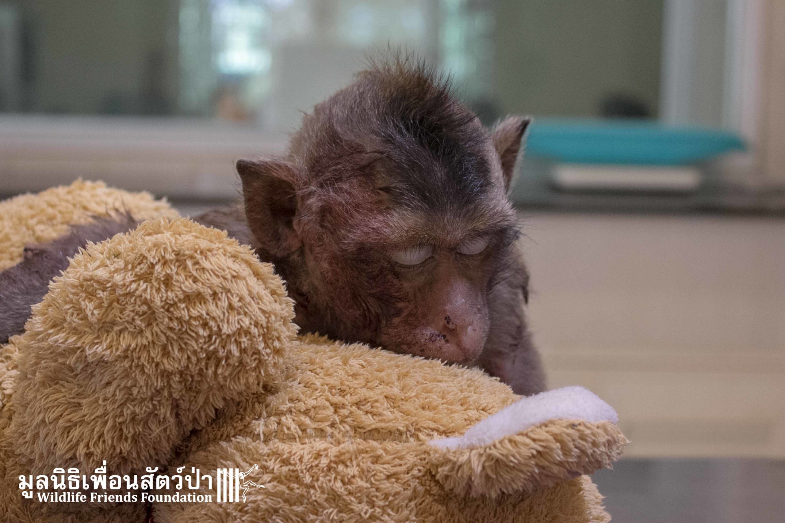 เมื่อไปถึงทีมพบว่าเจ้าลิงน้อยนอนเเน่นิ่งอยู่บริเวณฟุตบาทจึงคาดว่าน่าจะเสียชีวิตเเล้ว อย่างไรก็ตามเมื่อเดินเข้าไปใกล้ขึ้น กลับพบว่ามีการเคลื่อนไหวเเละหายใจอย่างเเผ่วเบา ทางทีมไม่รอช้ารีบช่วยเจ้าลิงเเละมุ่งหน้ากลับโรงพยาบาลทันที (เราได้ตั้งชื่อให้เจ้าลิงว่า”ธงชัย”)