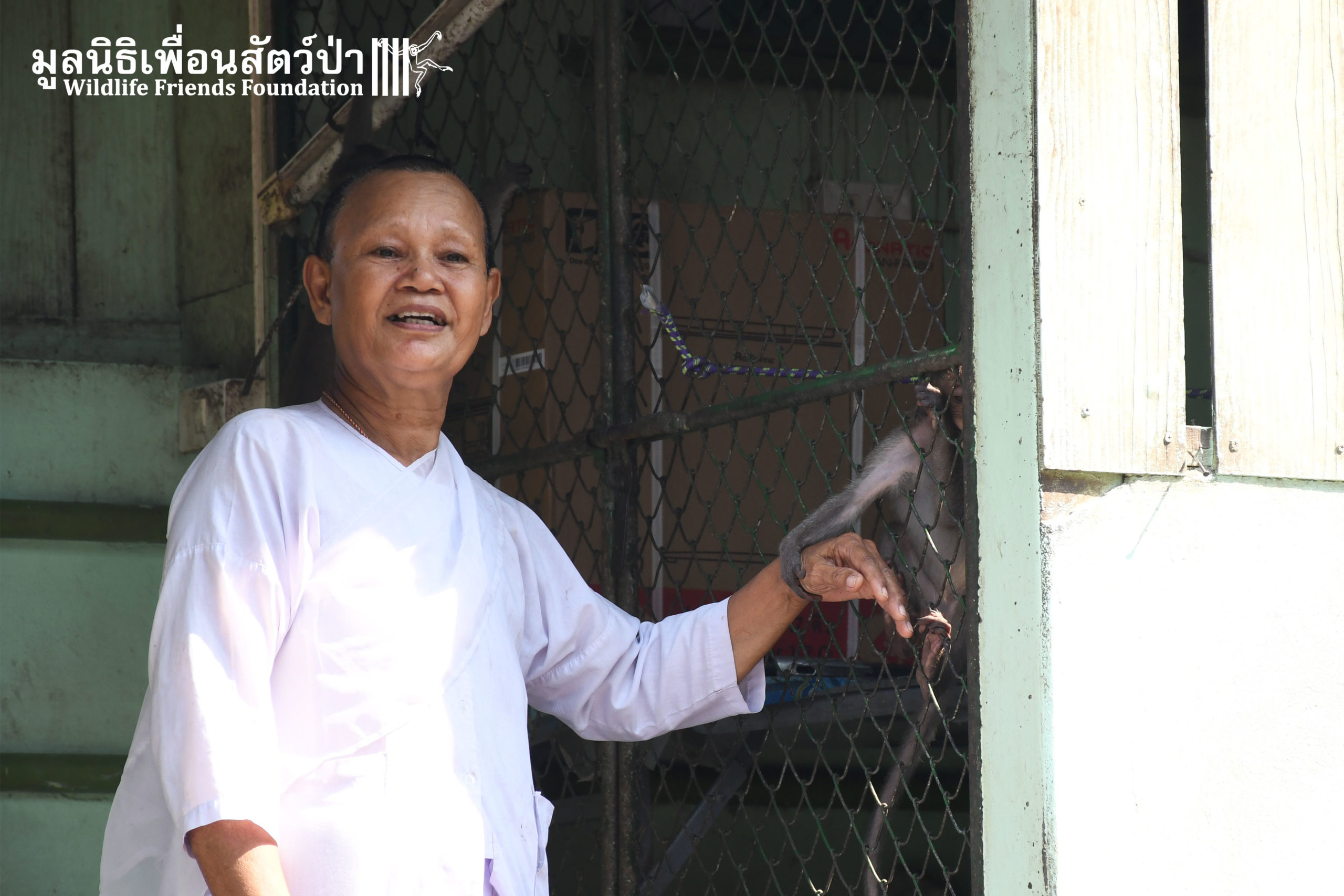The concerned citizen then brought Pong-pang to a nun at Khaotakrao temple because here there are many troops of monkeys. This nun has introduced many monkeys to the troop before.