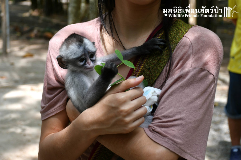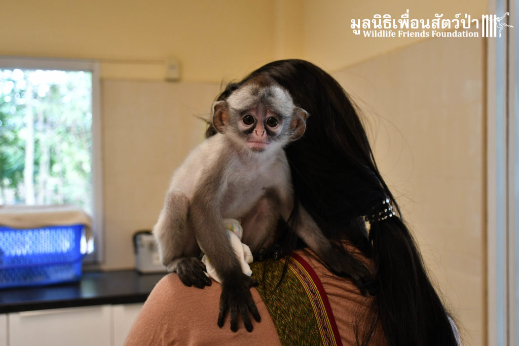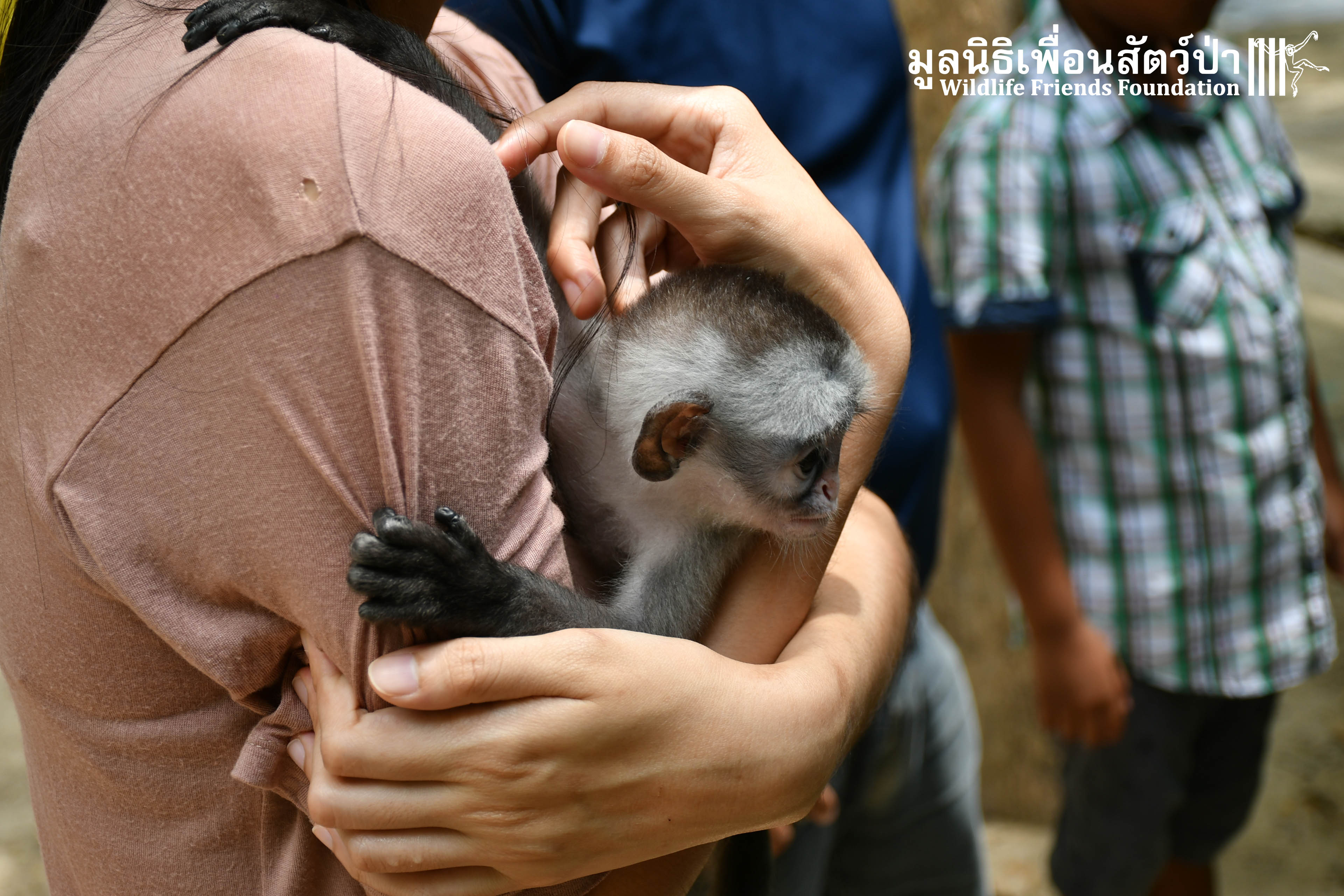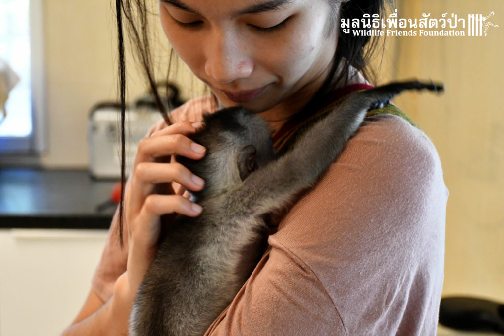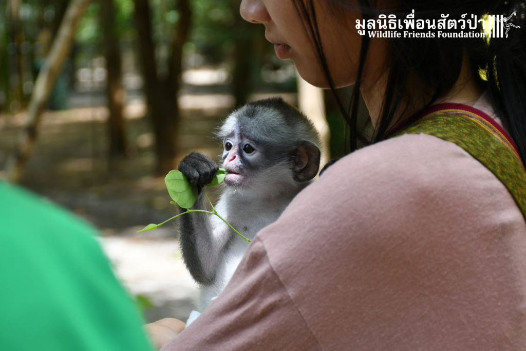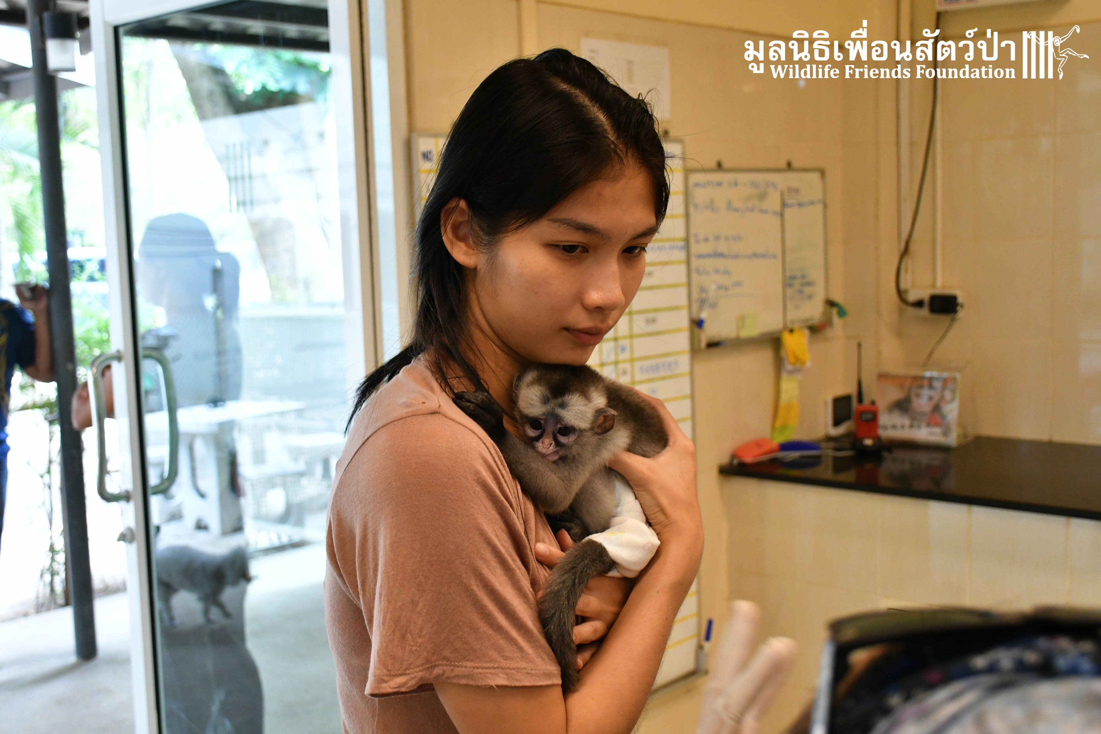 Jum Pee is one of many cases where humans keep wildlife as pets, often not knowing what they are doing when purchasing a wild animal. Without proper research and care these animals commonly become sick. With round-the-clock care by the WFFT Vet Team, we hope that Jum Pee will recover and join a group of other rescued leaf-monkeys.