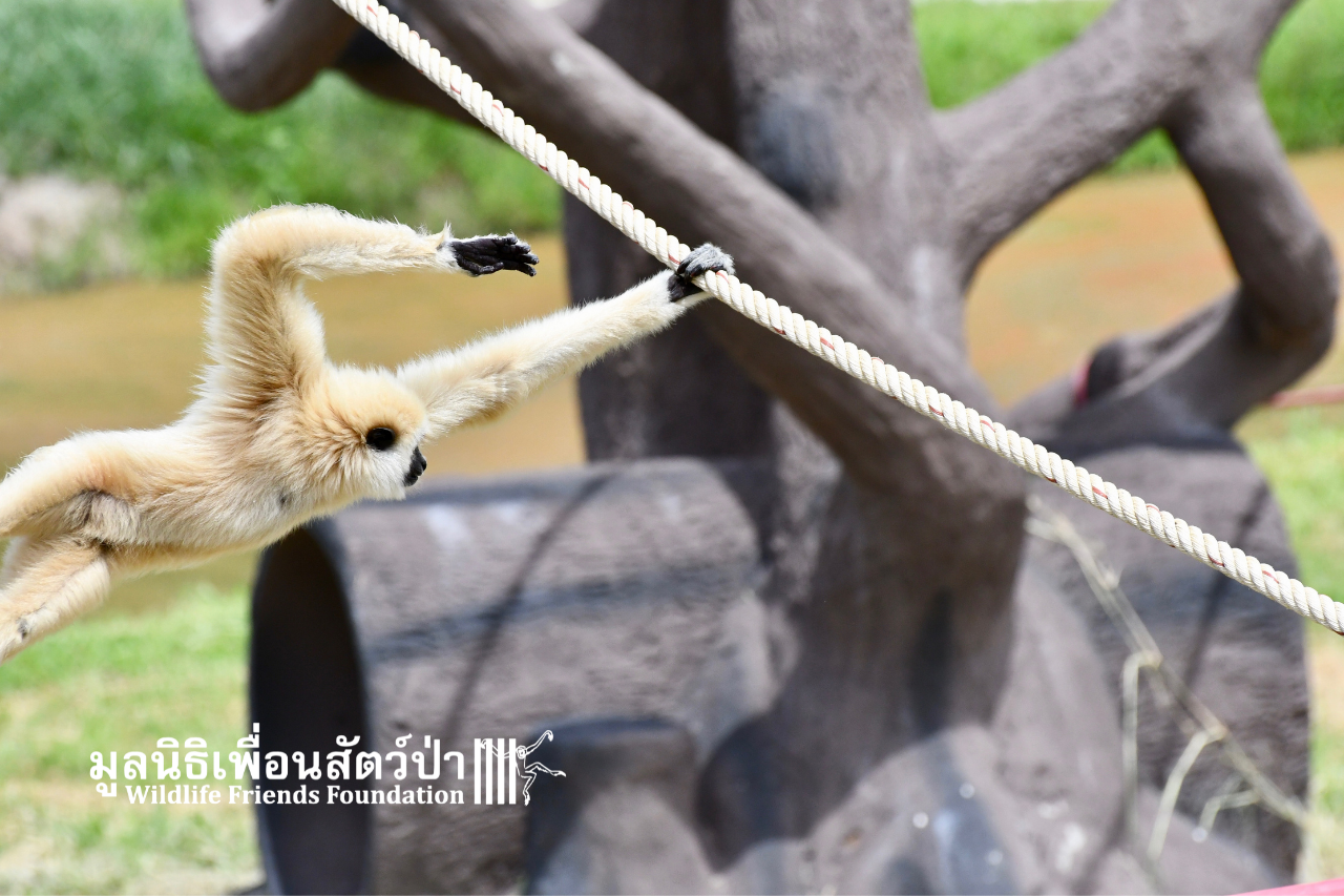 Whiskey and his white-handed gibbon family are loving life on their new island home. ภาษาไทยด้านล่าง