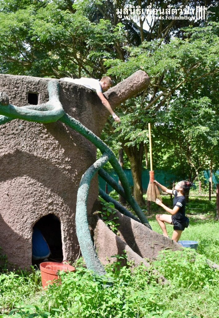 We are eternally grateful to our many dedicated volunteers who help us keep WFFT running smoothly. Check out our volunteers clearing a large bear enclosure, usually home to 6 sun and 2 Asiatic black bears. Our enrichment team also set up a new hammock for them. We had a good time this week and even got to work alongside a North American beige bear cub 😉. To join us as an animal warrior, check out http://www.wildlifevolunteer.org/