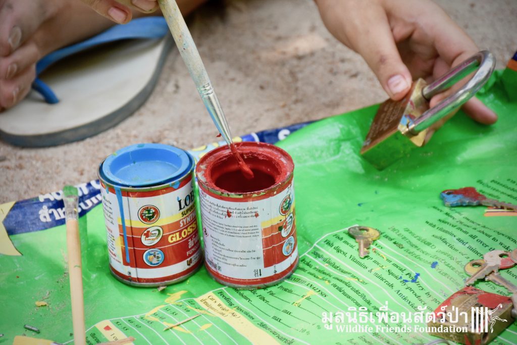 Here at WFFT we have around 600 animals made up of about 40 species. Because of this we need to make sure each lock and key are easy to find and organised. Meaning our locks must be beautifully painted by our volunteers.