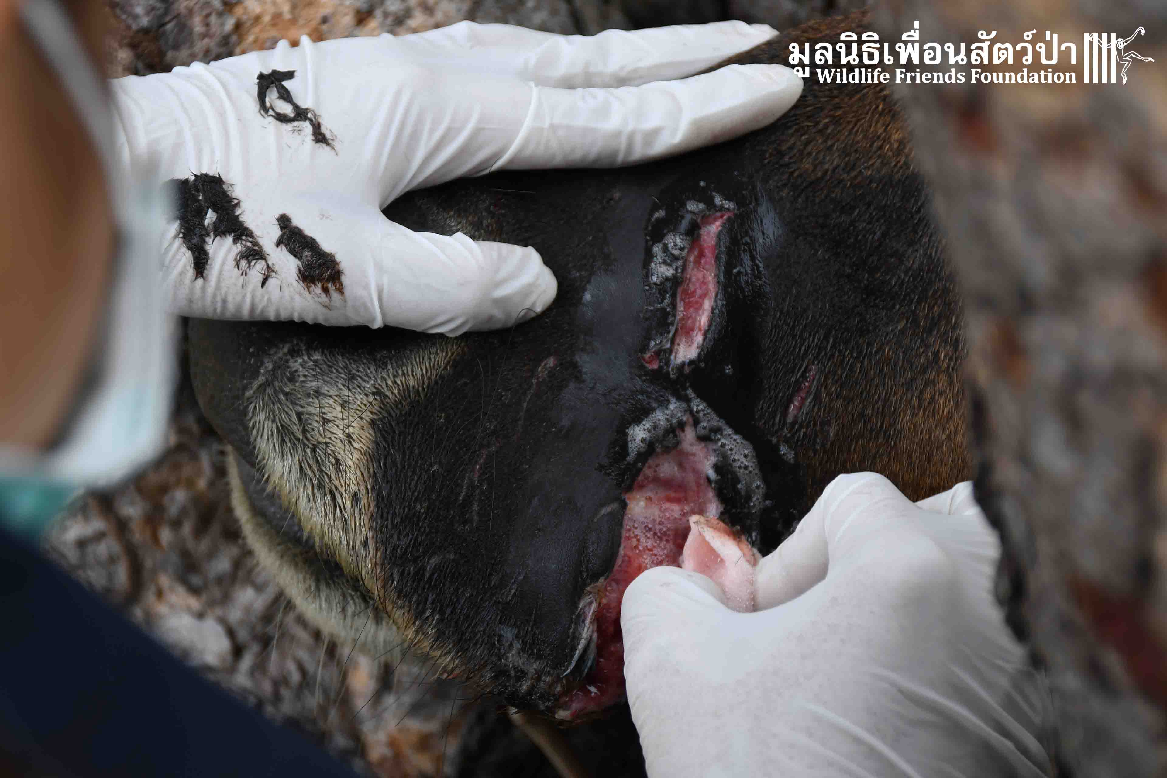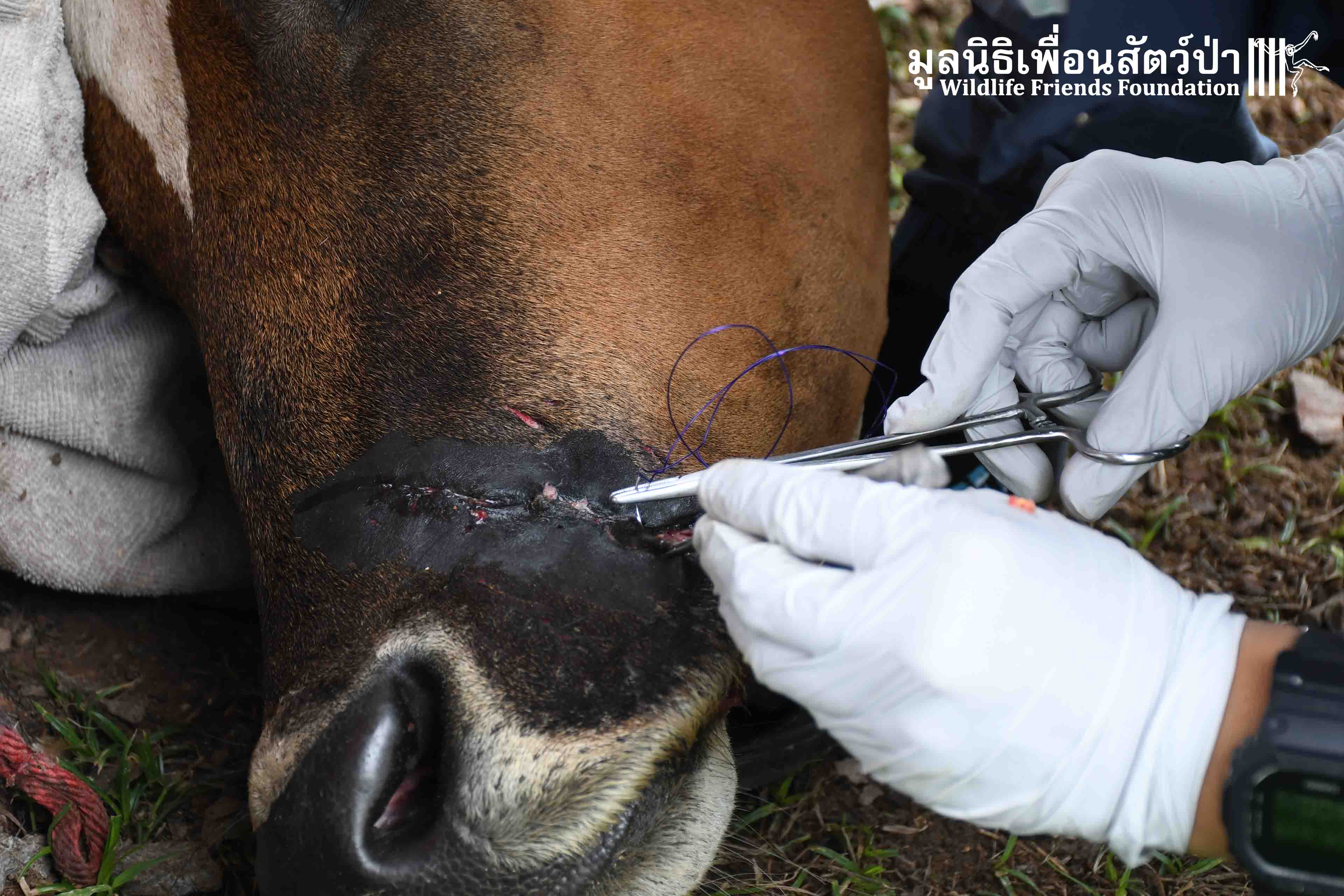 เมื่อถึงที่เกิดเหตุทางทีมสัตวเเพทย์ได้ตรวจร่างกายเเละพบว่ามีรอยเเผลขนาดใหญ่ที่ปากของเจ้ากำไรวัวตัวเมีย