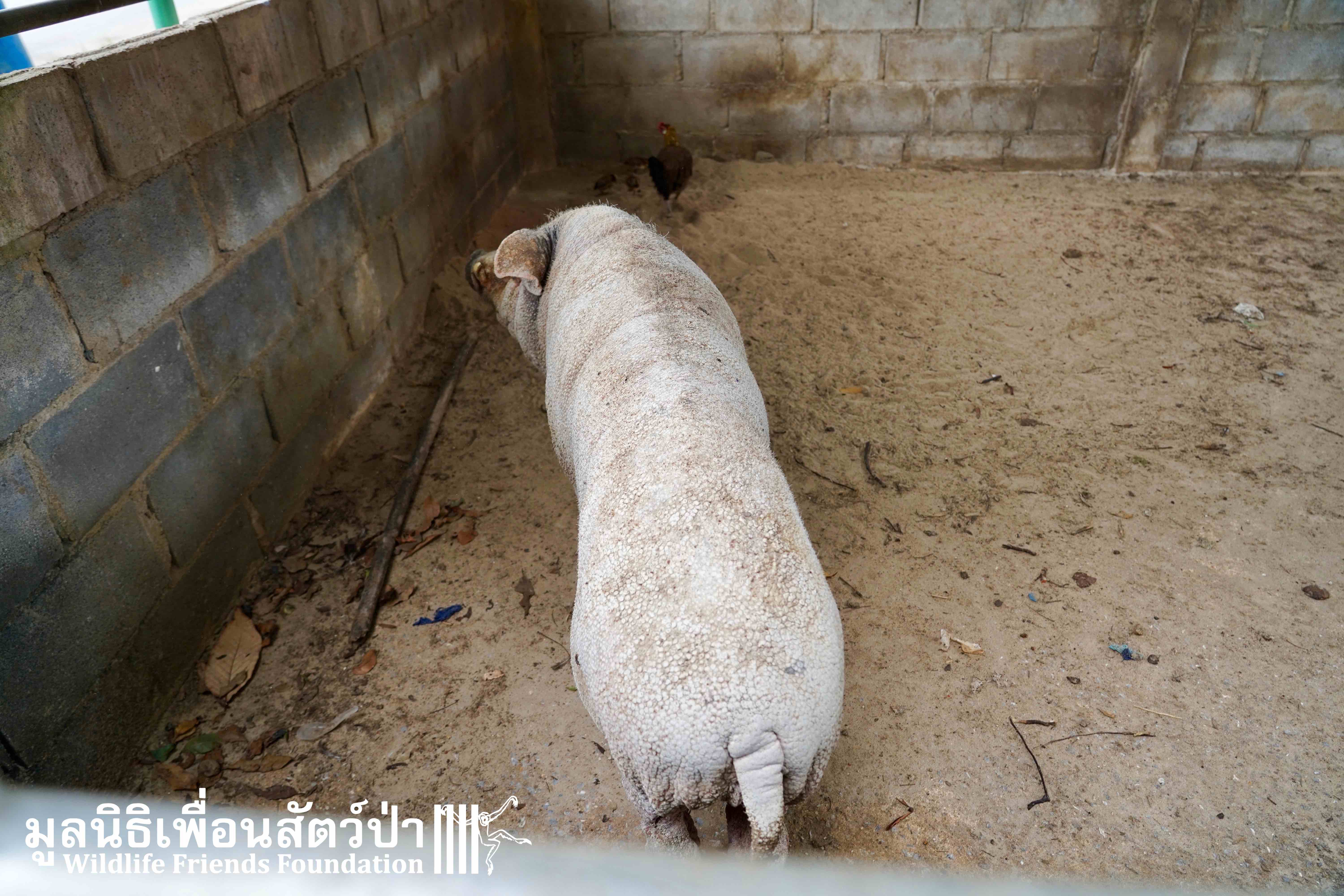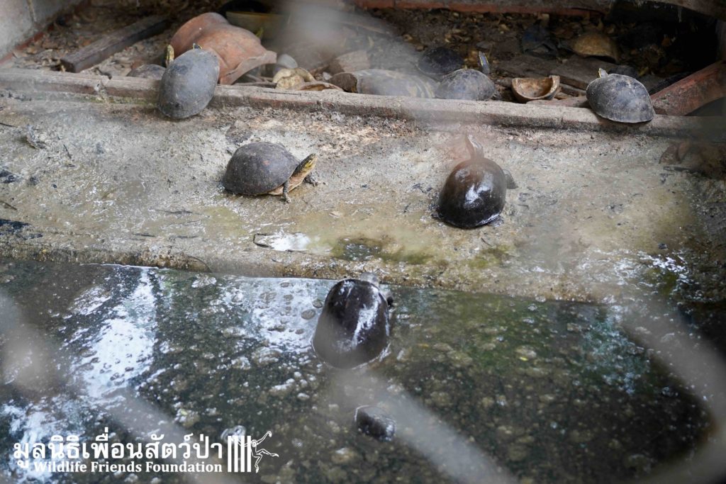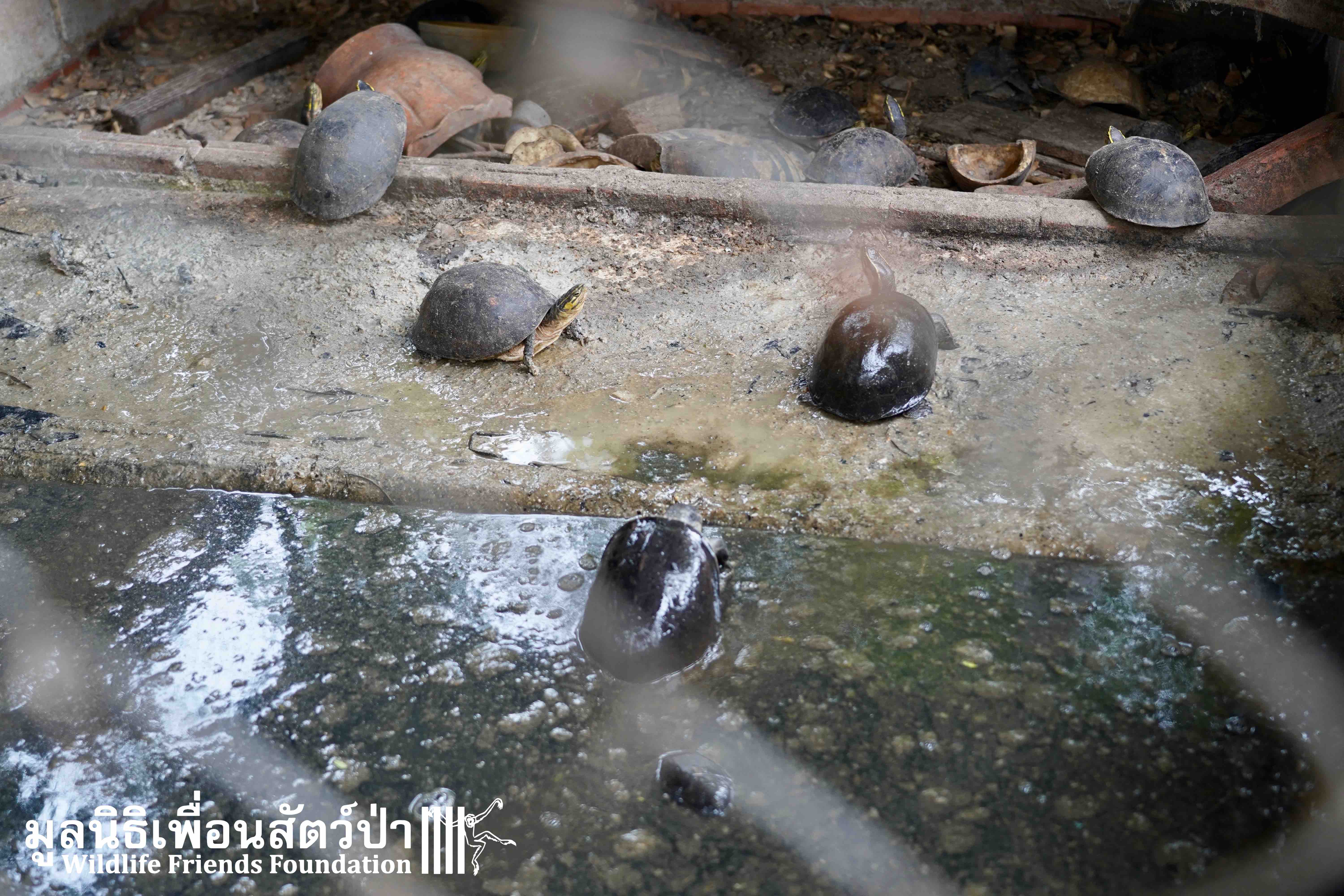 A few weeks ago we visited the temple to speak to the Abbot and assess the situation. Thankfully the abbot was concerned for the future of these animals and informed us that he would be happy for us to help them. During the initial visit we were shocked to find over 100 hundred animals including an endangered white-handed gibbon, an uncountable number of endangered turtles, a domestic goat, a palm civet and even domestic rabbits and ducks. WFFT’s philosophy is to focus on the rescue and rehabilitation of wild animals but in this instance we could not leave the fifteen domestic animals in this squalor so we committed to providing them with a permanent home at WFFT.