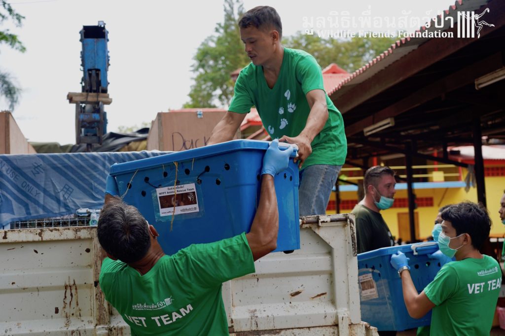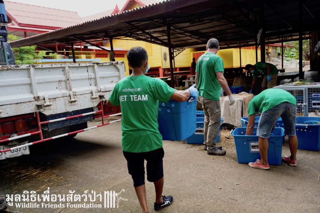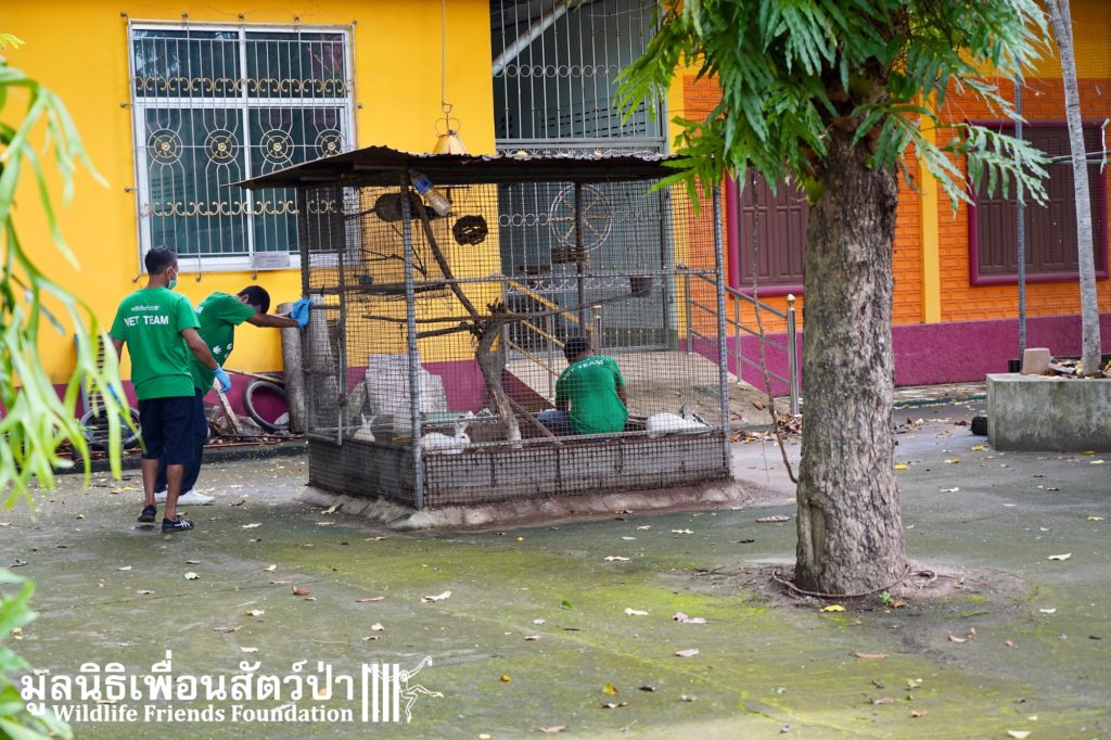 The rescue team are well experienced in handling all the various species, but have never done them all together on such a scale. After extensive meetings and checking of transportation containers a plan was formulated. The rescue team was then chosen and set off the day before the rescue. Having to navigate through Bangkok meant it took over 7 hours to reach the temple. Once there a final check was made and the team retired to a nearby hotel and prepared for an early start.