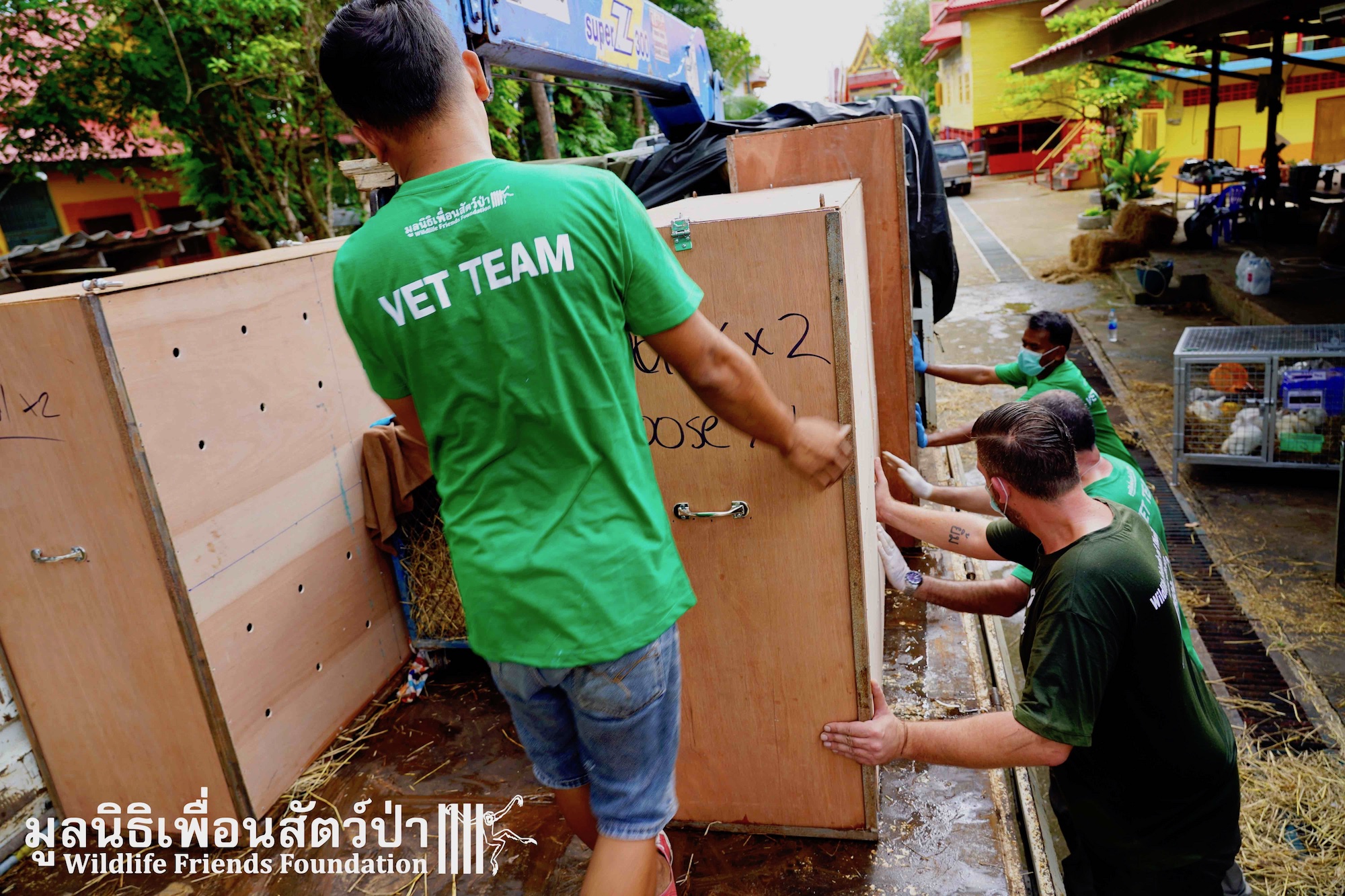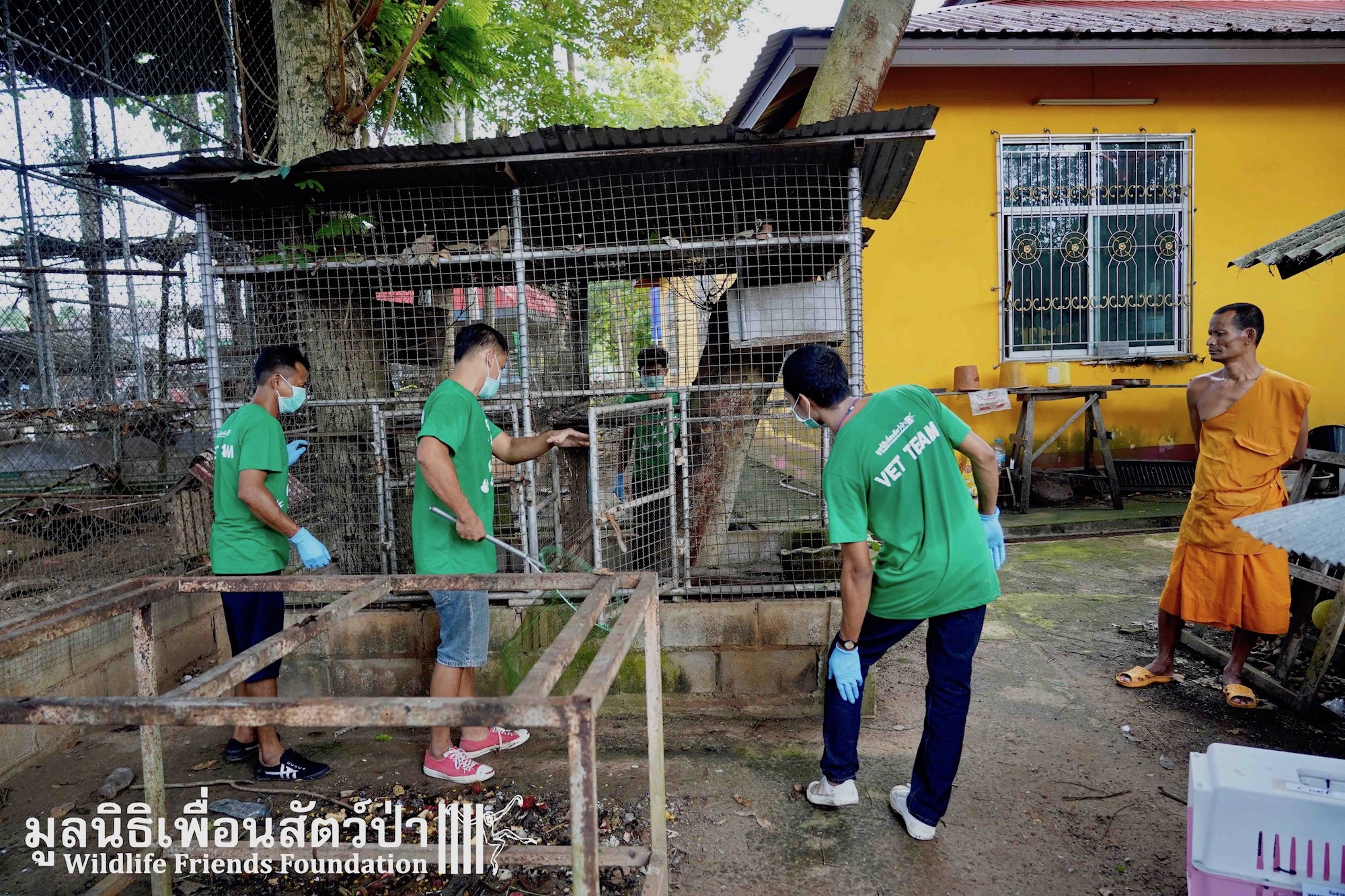 The rescue team are well experienced in handling all the various species, but have never done them all together on such a scale. After extensive meetings and checking of transportation containers a plan was formulated. The rescue team was then chosen and set off the day before the rescue. Having to navigate through Bangkok meant it took over 7 hours to reach the temple. Once there a final check was made and the team retired to a nearby hotel and prepared for an early start.