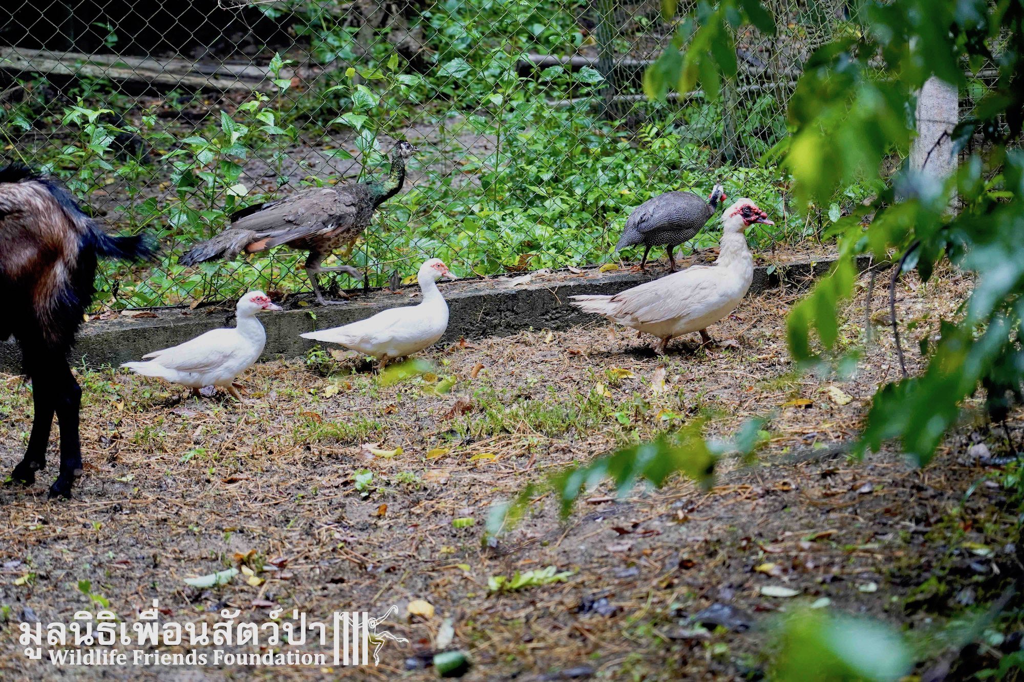 The goat proved a bit more frisky but once secured was gentle and relaxed. Two porcupines were netted and popped in a cage with ease and the Peafowl quickly followed. The goose was at the gate of his enclosure waiting to be let out so he was quickly restrained along with two of the ducks. The third duck had disappeared but luckily was spotted before the team finished and joined her friends. The Guineafowl was standing over her dead mate when the team visited previously and showed little resistance to leave this hell hole.