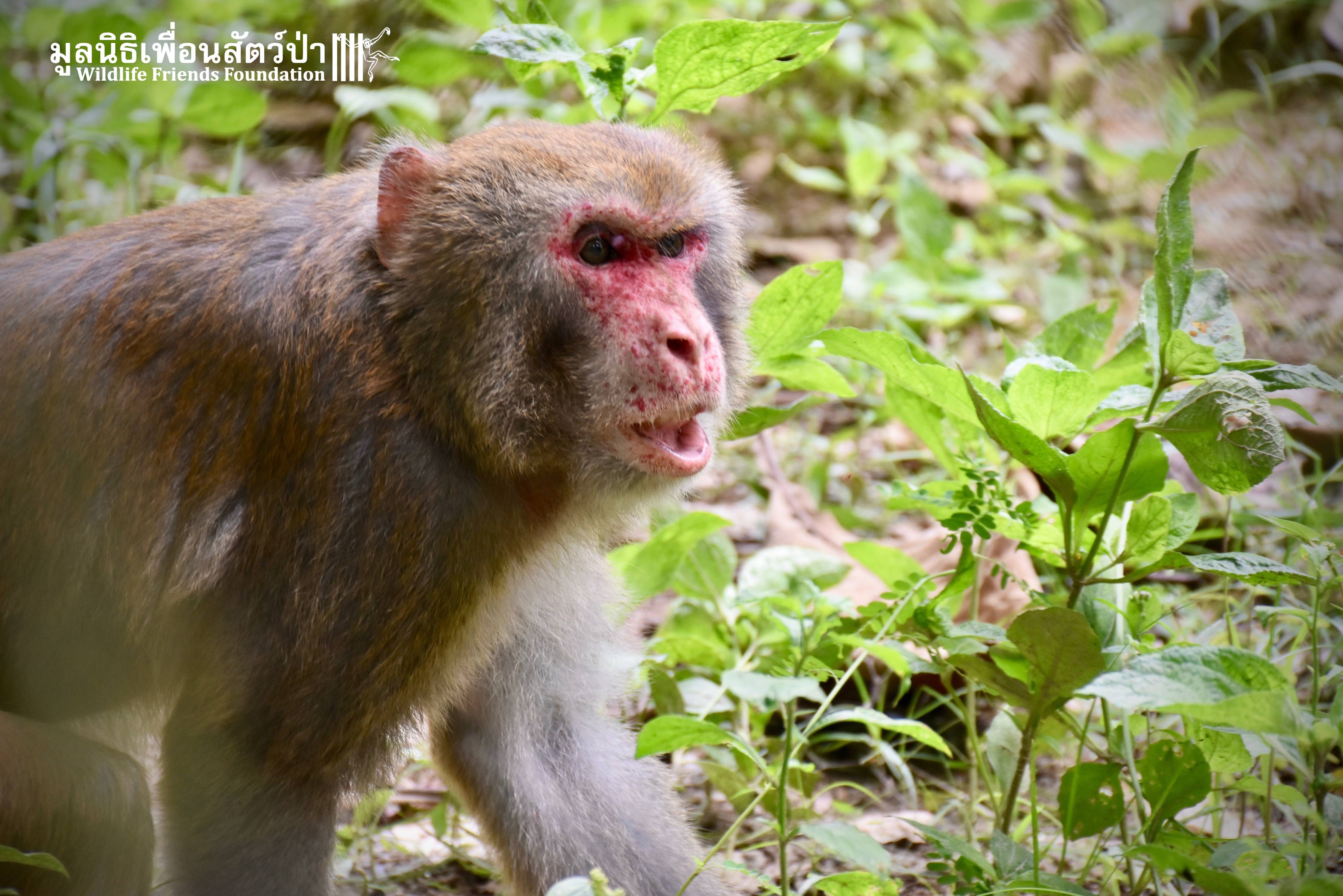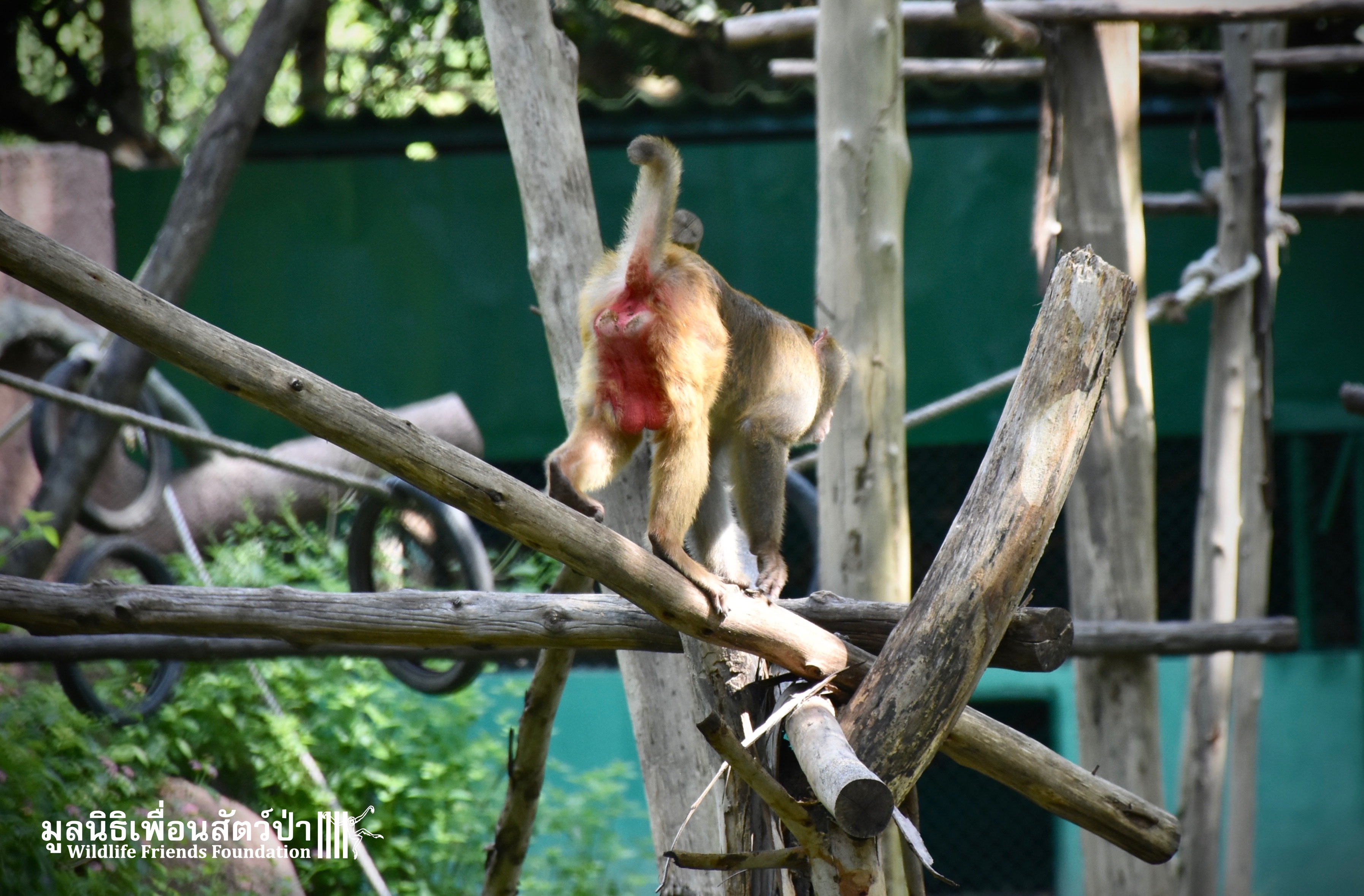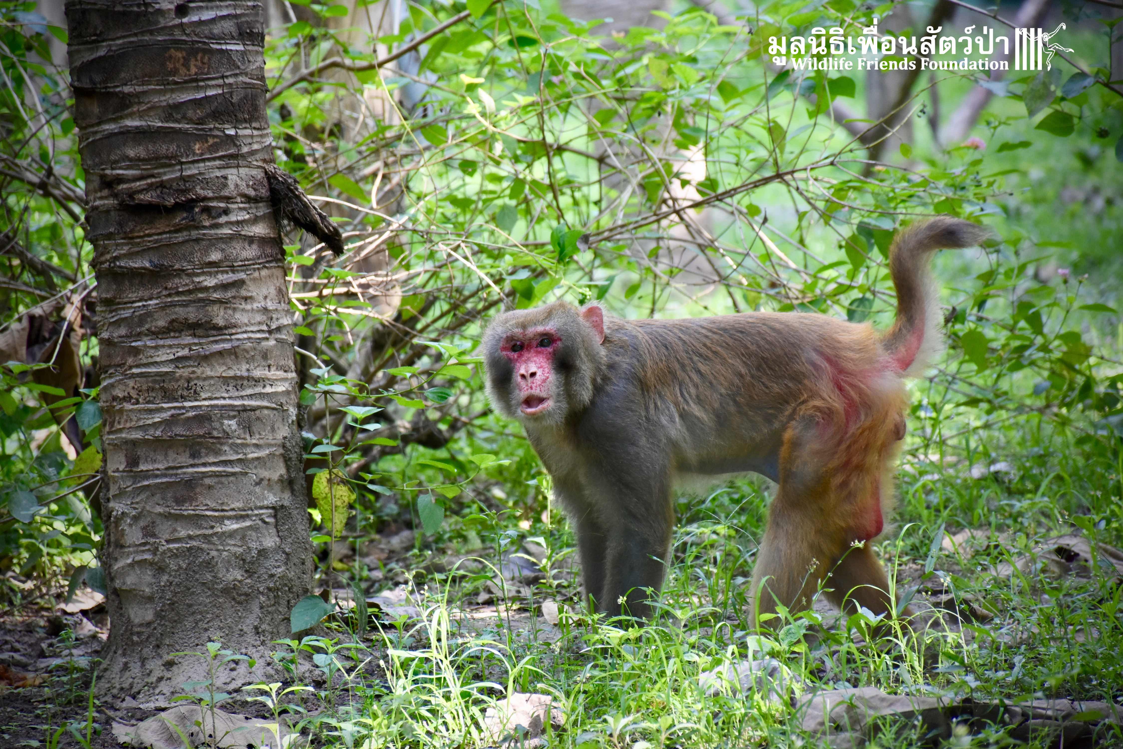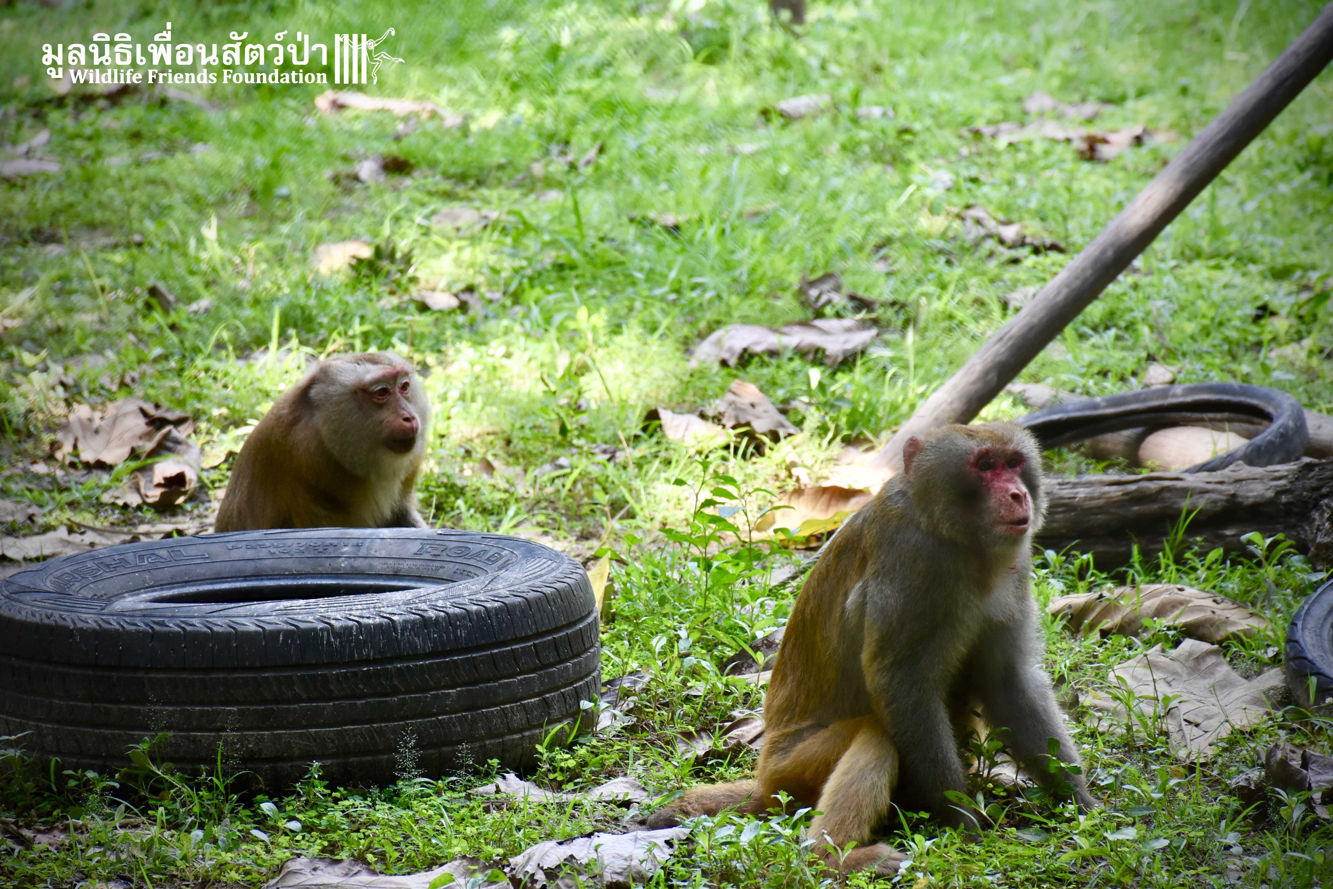 Last week, after spending some time in a side enclosure next to our old lady field, Joe was allowed into into the field with 3 other elderly macaques, Rose, Wan Jai and Jaw. It has taken some time to teach this old guy how to be a macaque again, as you can see from the pictures, Joe is doing great considering his past life.