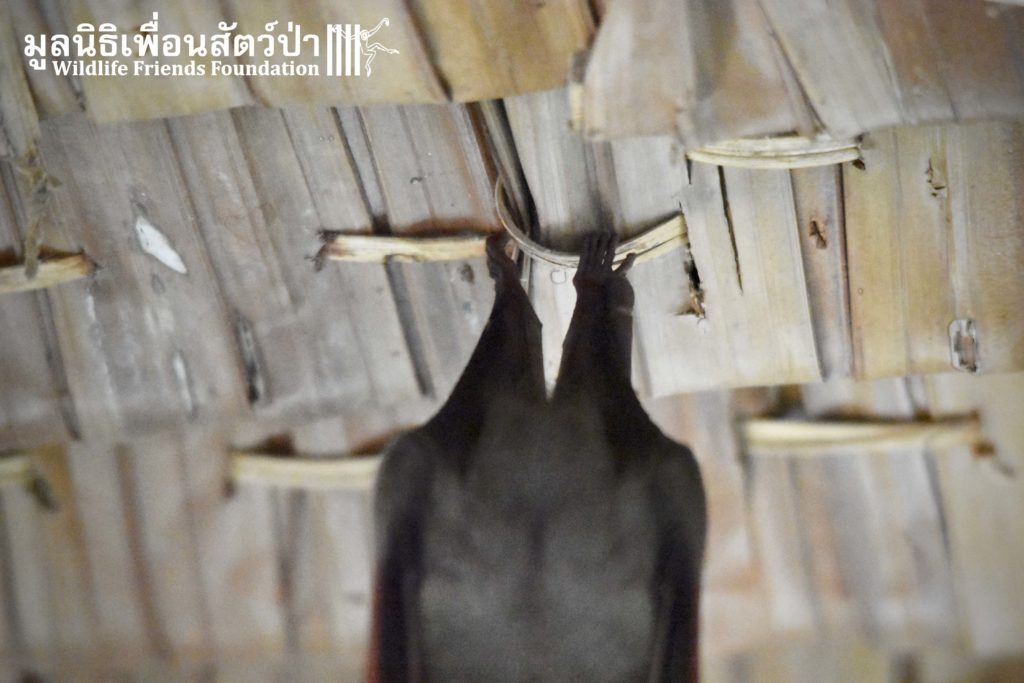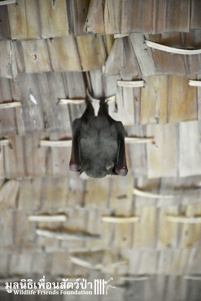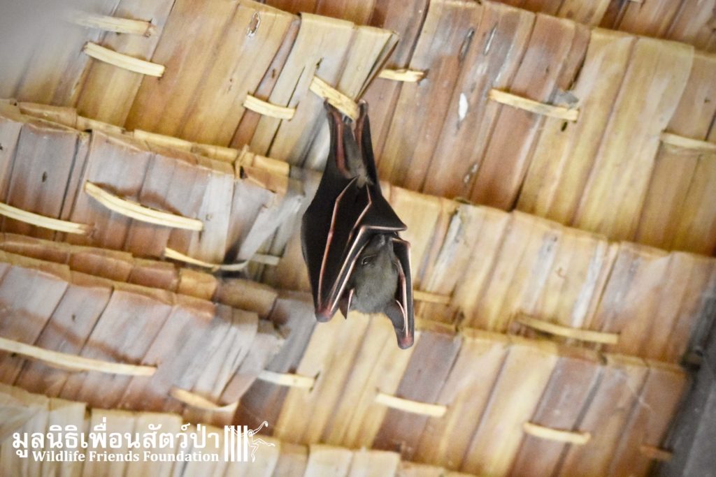 The WFFT Wildlife Rescue Centre is well known for rescuing and providing a roof to animals in need. One more time, and according to the rule, it has been done. And this time, it was under a roof in the communal volunteer area that a little lesser short-nosed fruit bat found refuge. There was nothing wrong with her, she just needed somewhere to hang for the day to sleep through until the night. Our volunteers and staff endeavored to not disturb our little friend. After a good rest, she took-off into the night to live new adventures.