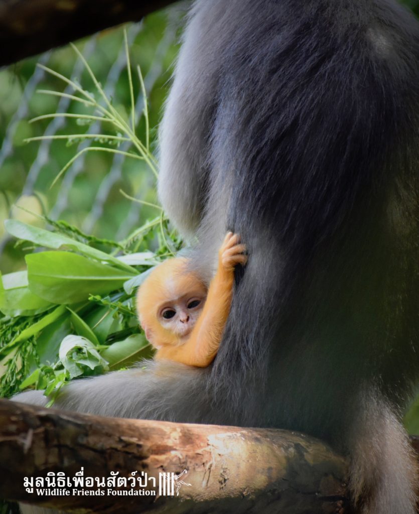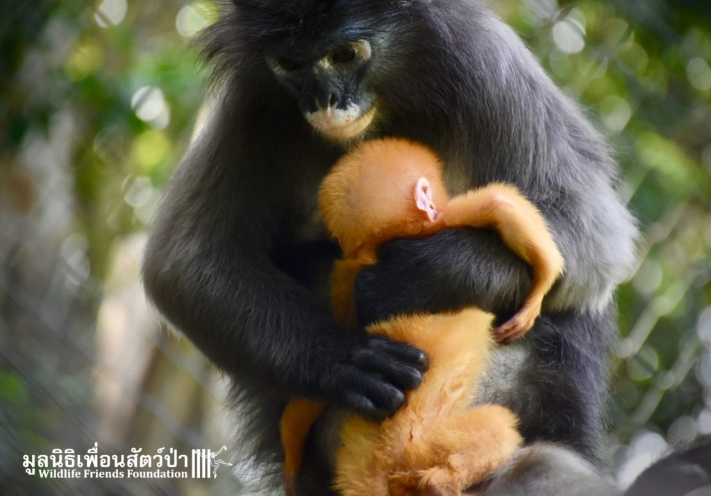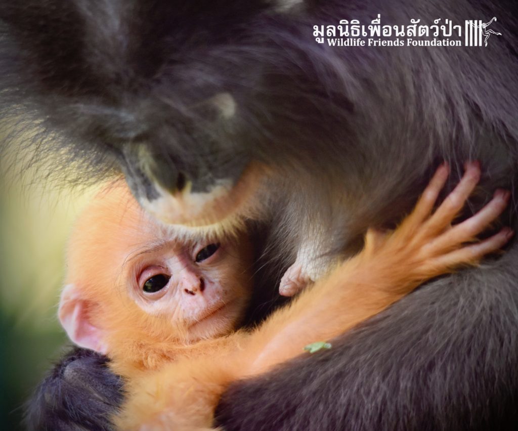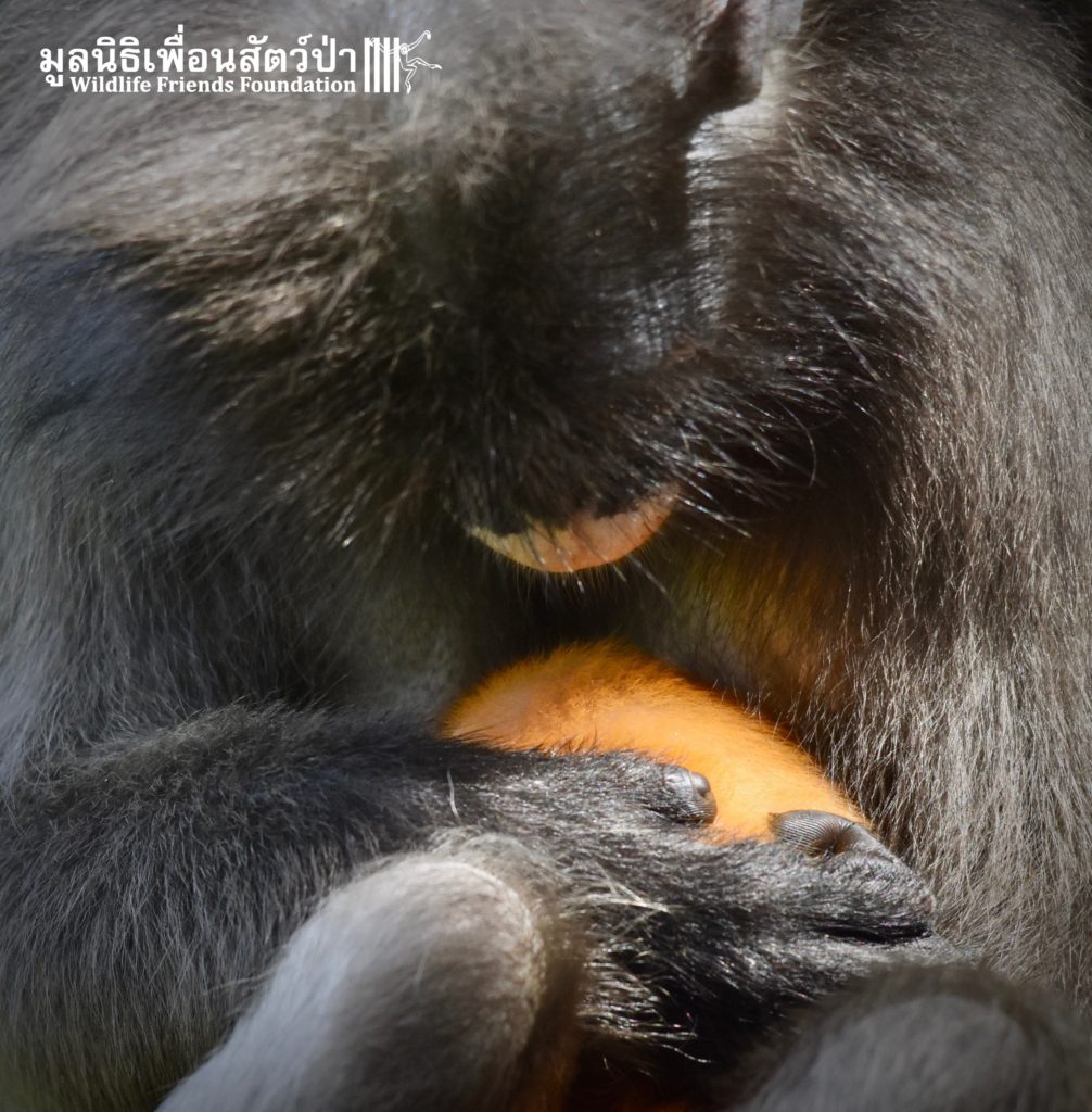 WFFT does not encourage or promote the unnecessary breeding of captive wildlife however accidents sometimes happen. And here is Peach (his mothers name is Lukwa, Plum in Thai), a baby dusky langur who first see the light of the day just last week. He is doing good with his mom Lukwa. They have been isolated for more privacy so the mother and baby have time to bond.