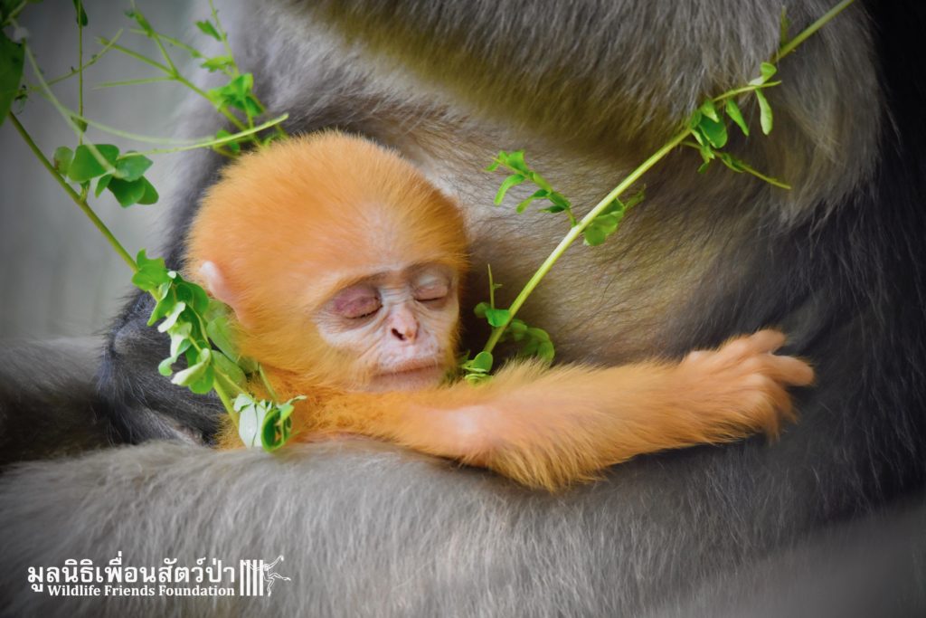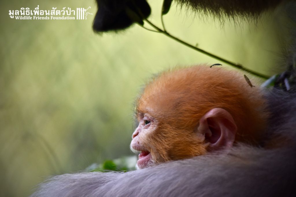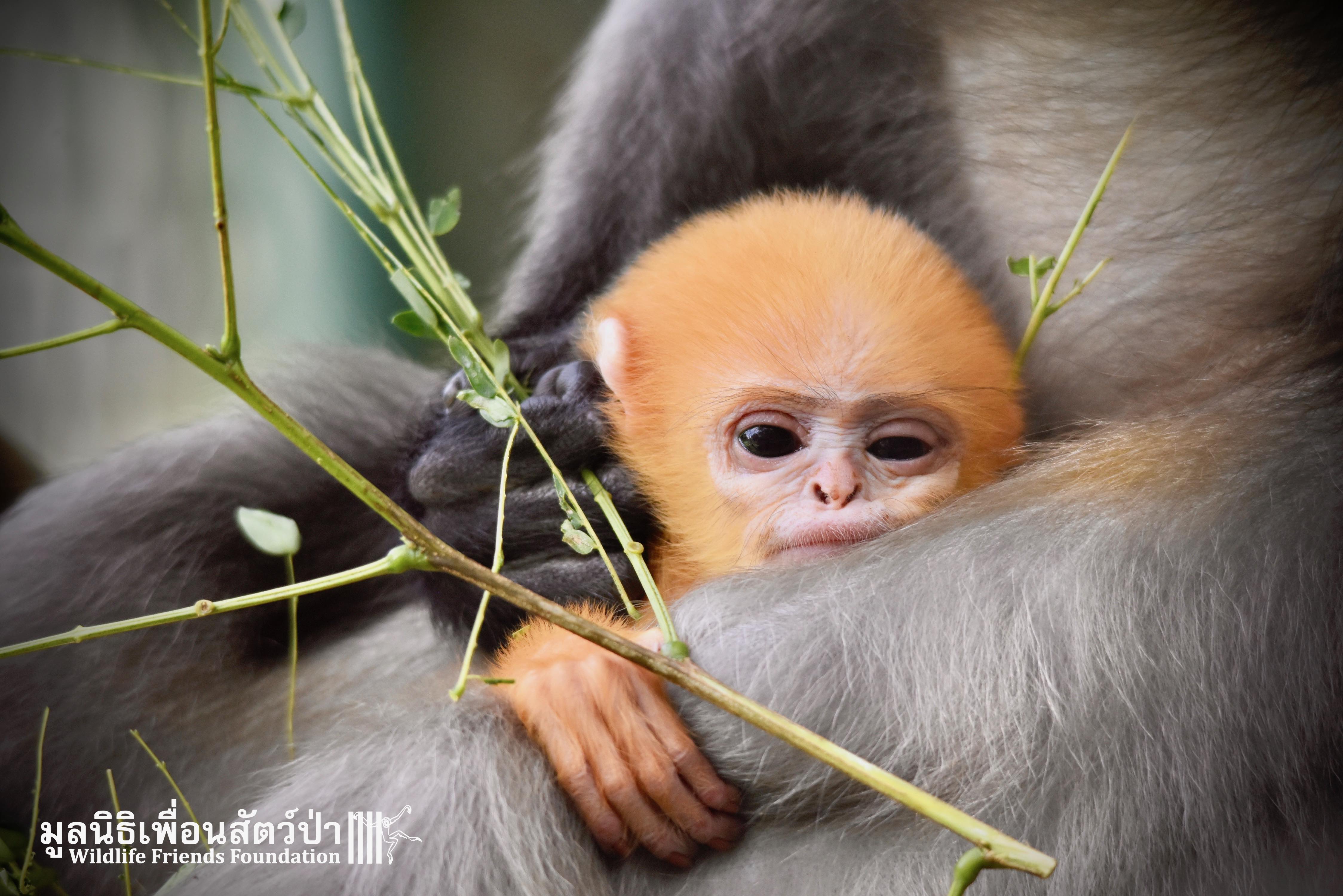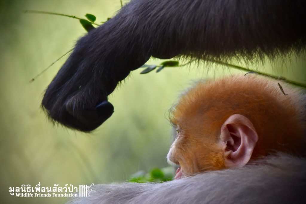 WFFT does not encourage or promote the unnecessary breeding of captive wildlife however accidents sometimes happen. And here is Peach (his mothers name is Lukwa, Plum in Thai), a baby dusky langur who first see the light of the day just last week. He is doing good with his mom Lukwa. They have been isolated for more privacy so the mother and baby have time to bond.