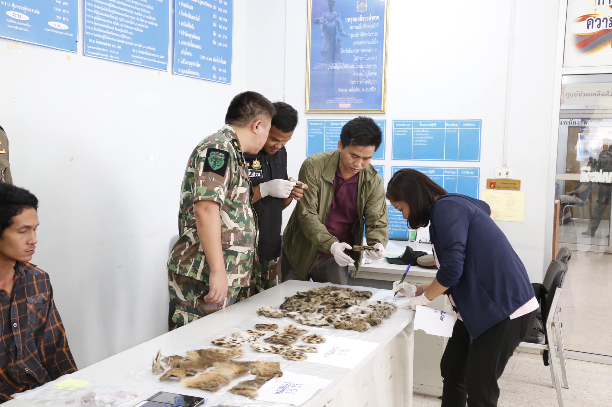 Thai authorities seize clouded leopard carcasses, golden cat and leopard cat skins and other animal parts after a man offered wildlife for sale on Facebook. On 25 March 2019, The Department of National Park (Phaya Seua task force) in cooperation with police and military in Ratchaburi acted upon a tip off and investigated after a Facebook post with photographs of wildlife carcasses and skins for sale, found after obtaining a search-warrant then they found carcasses of protected animals which included 23 clouded leopards pieces of skin, 13 golden cat and 9 leopard cat skins, and 2 muntjac horns. The goods were found at Mr.Adul Martlueng’s (อดุลย์ มาตรเหลือง) house at 388/19 Moo 1 Tha KhoeiSuan, Phueng District, Ratchaburi. Mr.Adul Martlueng has been arrested and is being held awaiting trial at Suan Phung Police Station. We congratulate the Department of National parks with their swift action after receiving the tip-off! Another wildlife trader behind bars, Great work! Original story here: https://www.facebook.com/prhotnews02/posts/1743855139093298